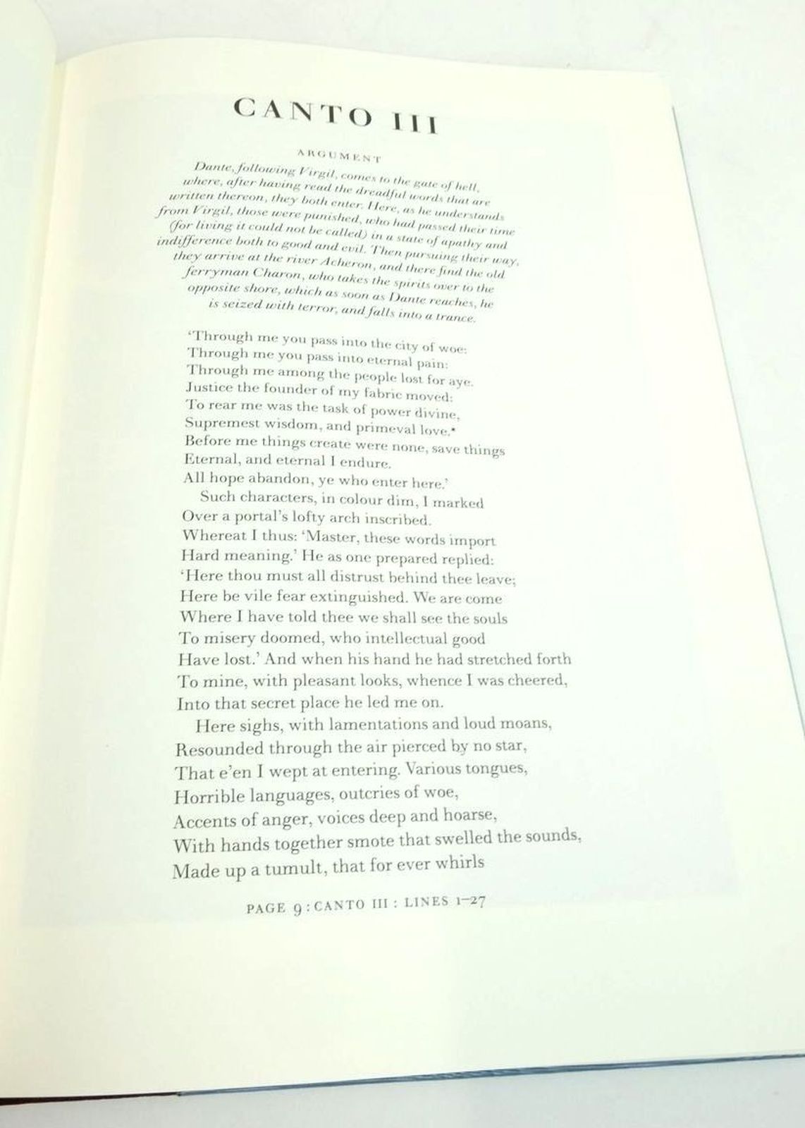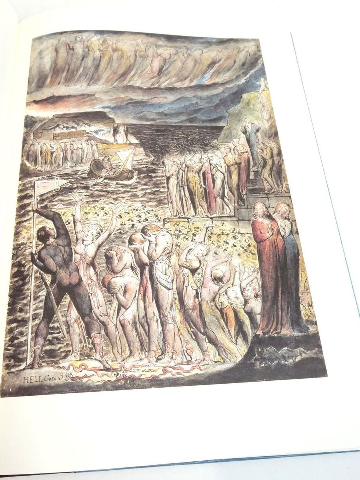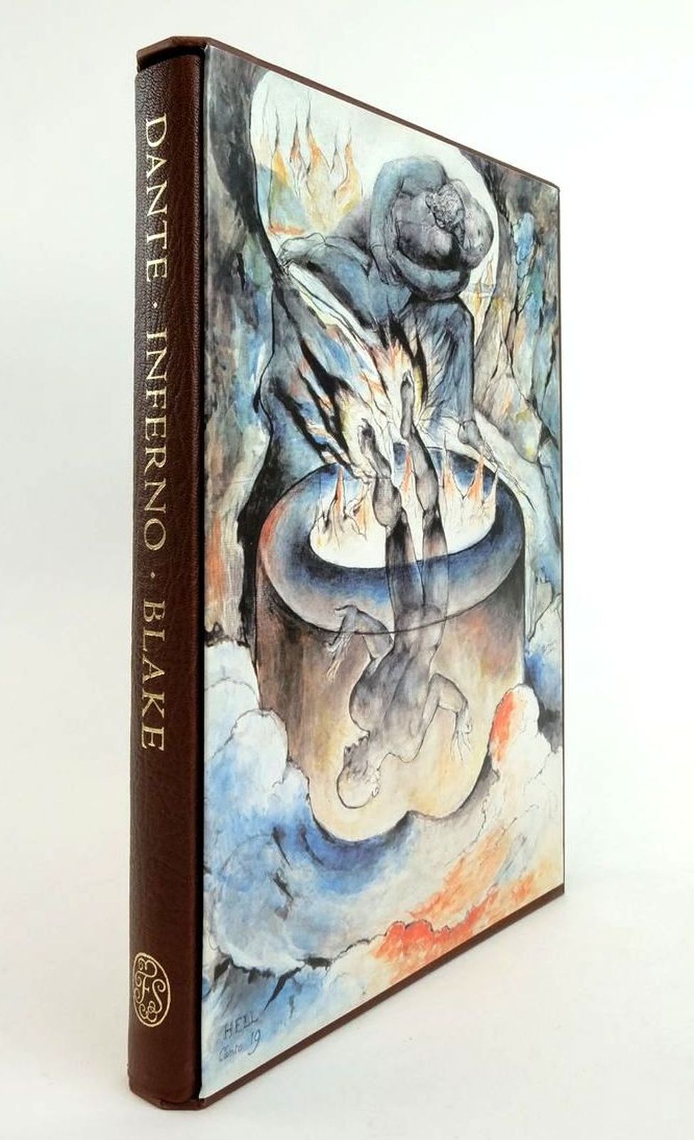 Slightly better than very good condition. Large format. Brown leather spine with gilt titles. Pale blue silk moire sides. Top edge brown. Superb colour plates by Blake. Translated by Cary with an introduction by Hamlyn.
