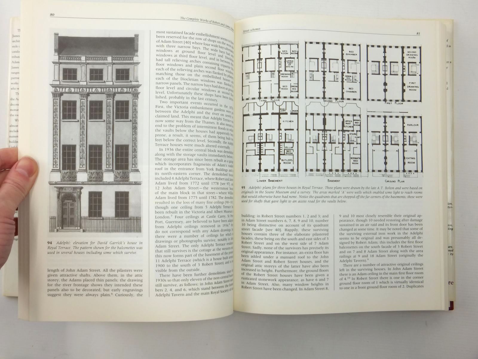 Nearly fine condition in a nearly fine dustwrapper. The eighteenth century architects Robert and James Adam gave their name to a classical style of architecture, a castle style of architecture and to a style of decoration. This book is the first complete catalogue of their executed works. Red cloth with gilt title to spine. B/w photos and diagrams throughout, a few colour photos. xii and 447 pages including index.