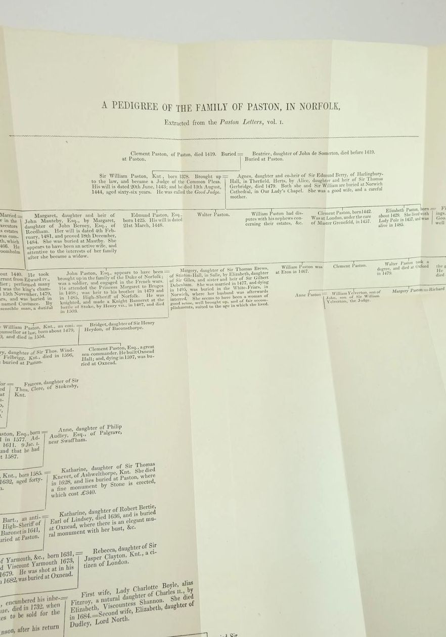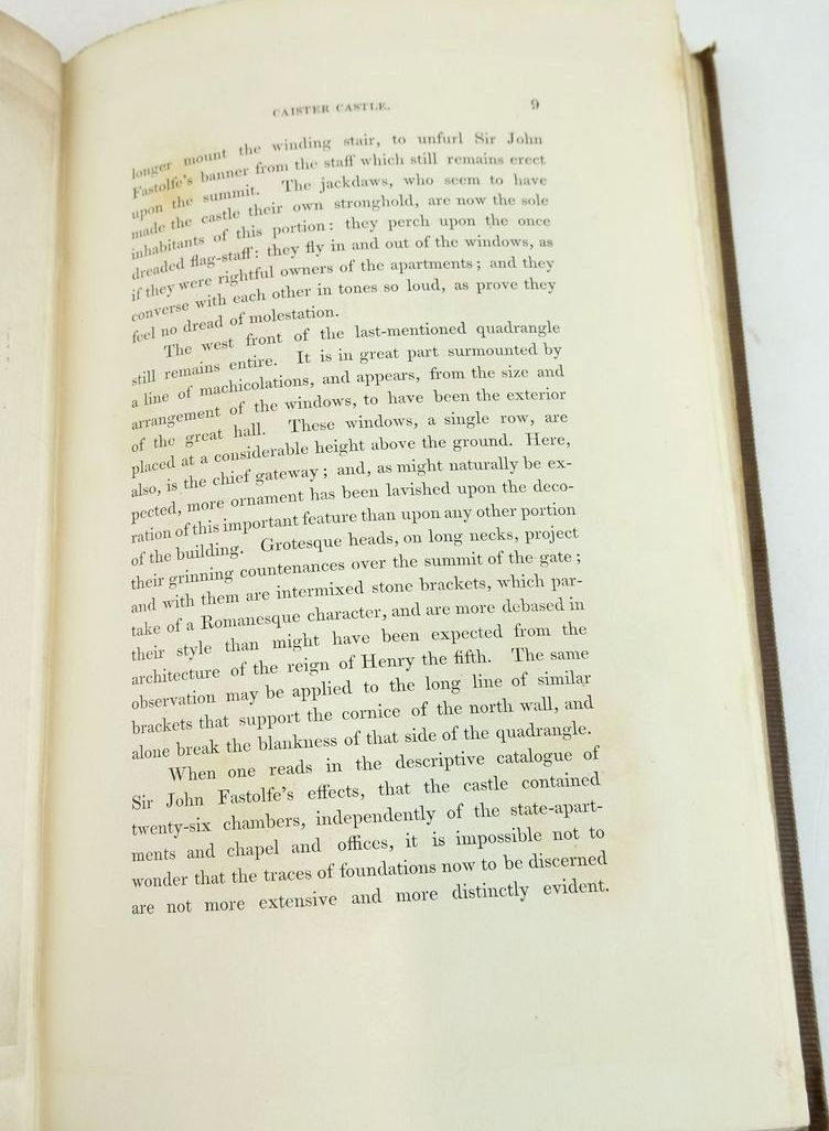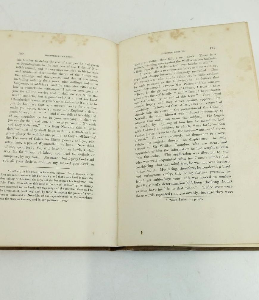 Almost very good condition. Full title is: Sketch of the History of Caister Castle, Near Yarmouth; Including Biographical Notices of Sir John Fastolfe and of Different Individuals of the Paston Family. Edited by Dawson Turner. Cloth boards with blind tooling and borders to both sides. Gilt title to spine. B/w plates. Pedigree of Paston family folds-out to rear.