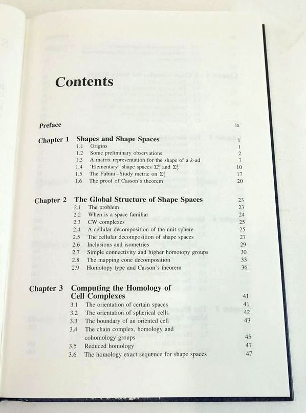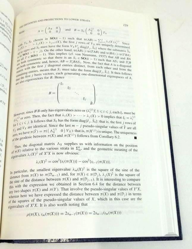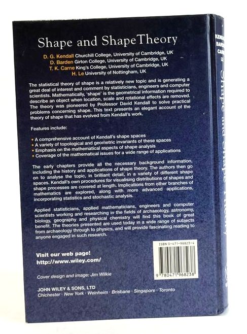 Slightly better than very good condition. An elegant account of the theory of shape that has evolved from Kendall's work. Features include: A comprehensive account of Kendall's shape spaces; A variety of topological and geometric invariants of these spaces; Emphasis on the mathematical aspects of shape analysis; Coverage of the mathematical issues for a wide range of applications. Blue glazed boards. xi and 306 pages including index.
