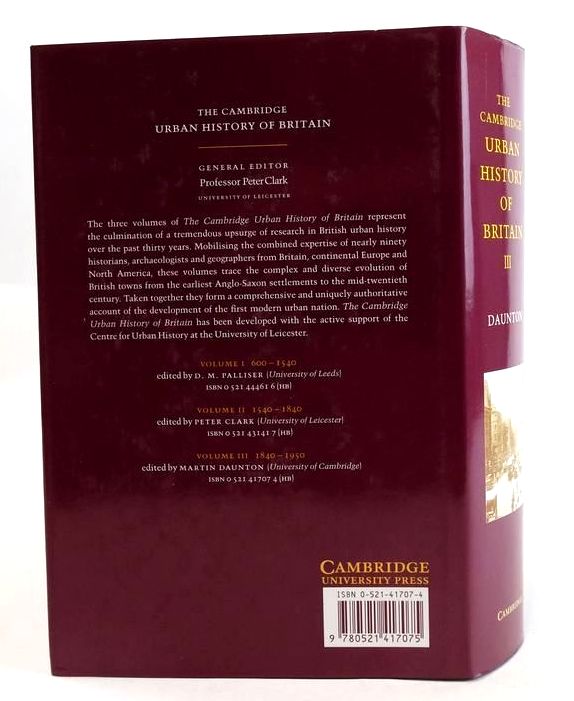 Nearly fine condition in a slightly better than very good dustwrapper. The complex and diverse evolution of British towns from the earliest Anglo-Saxon settlements to the mid-twentieth century. Blue cloth boards, gilt title to spines. Volume I: 600 - 1540; Volume II: 1540-1840; Volume III:P 1840 - 1950. A heavy set.