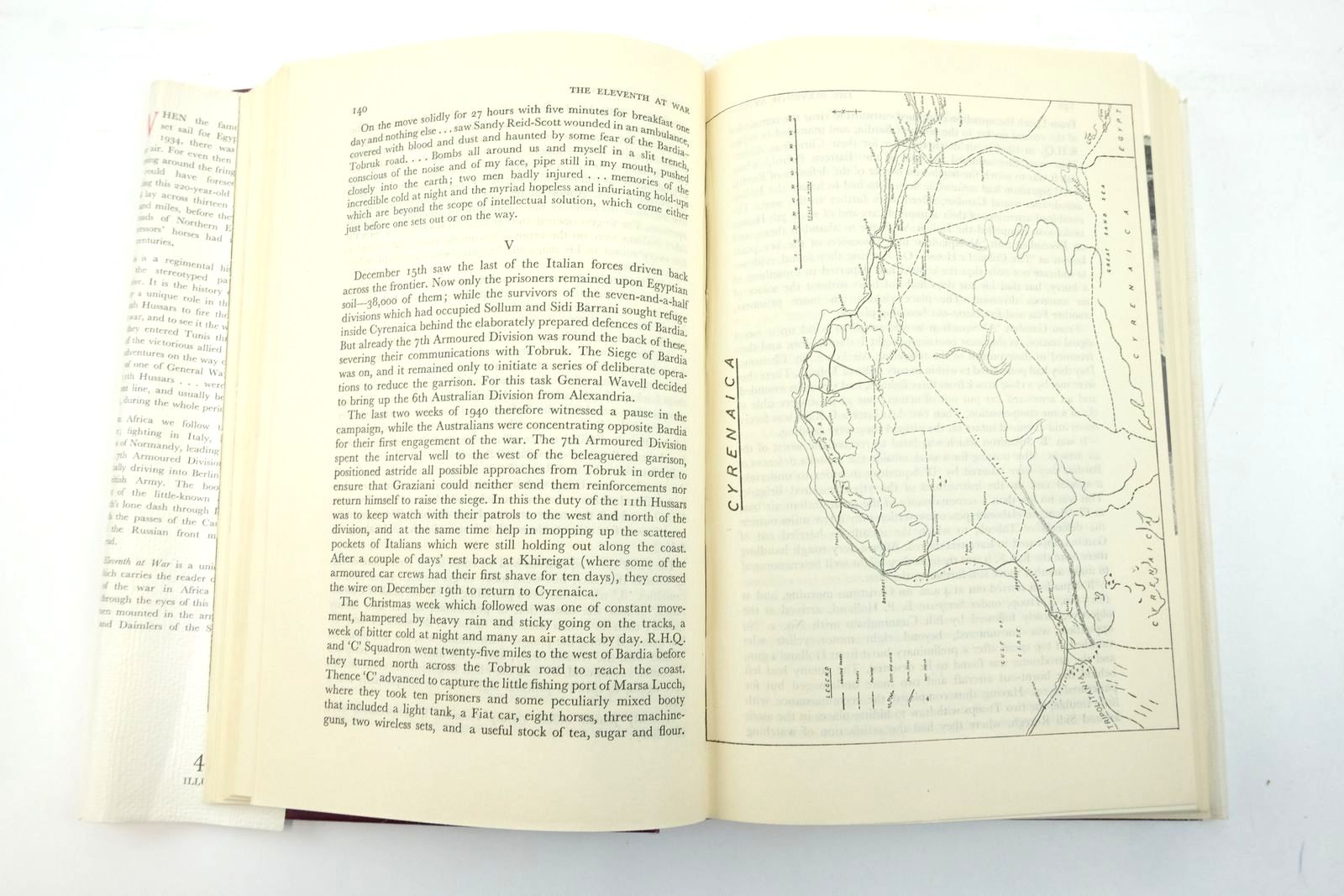 Almost very good condition in a almost very good dustwrapper. Being the Story of the XIth Hussars (Prince Albert's Own) Through the Years 1934-1945. Purple/maroon cloth with gilt title to spine and vignette to front cover. Colour frontis. B/w photos.