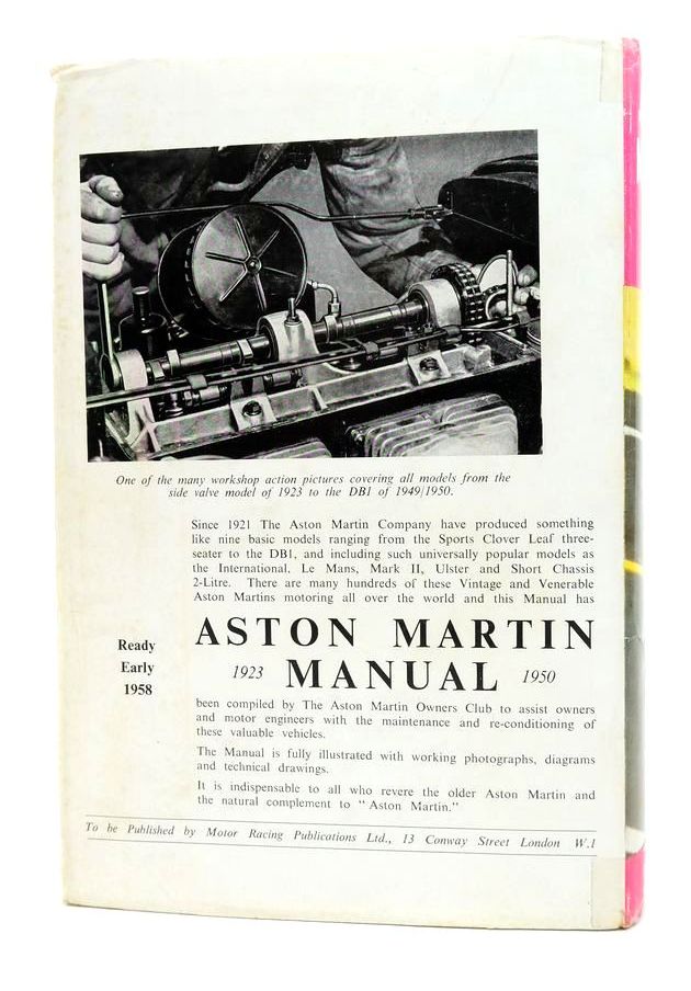 Almost very good condition in a almost very good dustwrapper. The engineering romance of Aston Martin from the early days in 1913 up until 1957. 1921 to 1940 by Inman Hunter and F.E. Ellis with 1946 to 1957 by Coram. Colour frontis. B/w photos. 343 pages + table of races + owner's club + index.