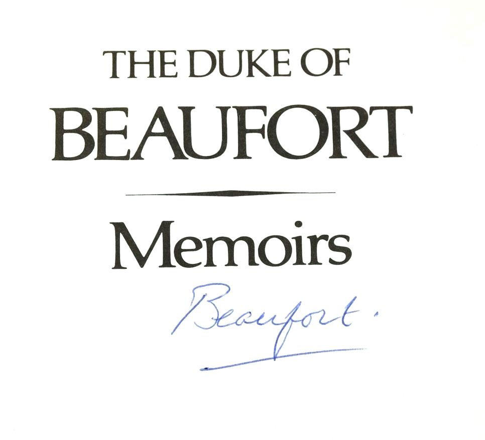 Very good condition in a very good dustwrapper. A fascinating insight into a way of life peculiarly English and in many way unique even within Britain. Memoirs of the 10th Duke of Beaufort. Blue boards, gilt title to spine. B/w photos. 178 pages.