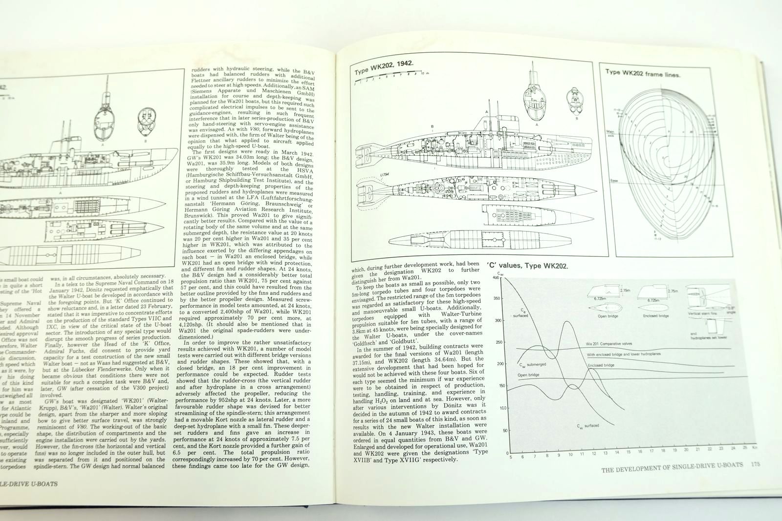 Almost very good condition in a almost very good dustwrapper. Large, square format. The evolution and technical history of German submarines. 384 pages. B/w photos and technical diagrams.