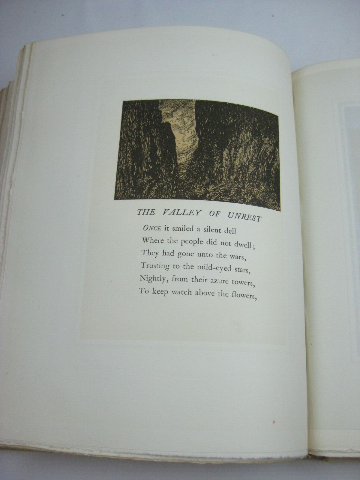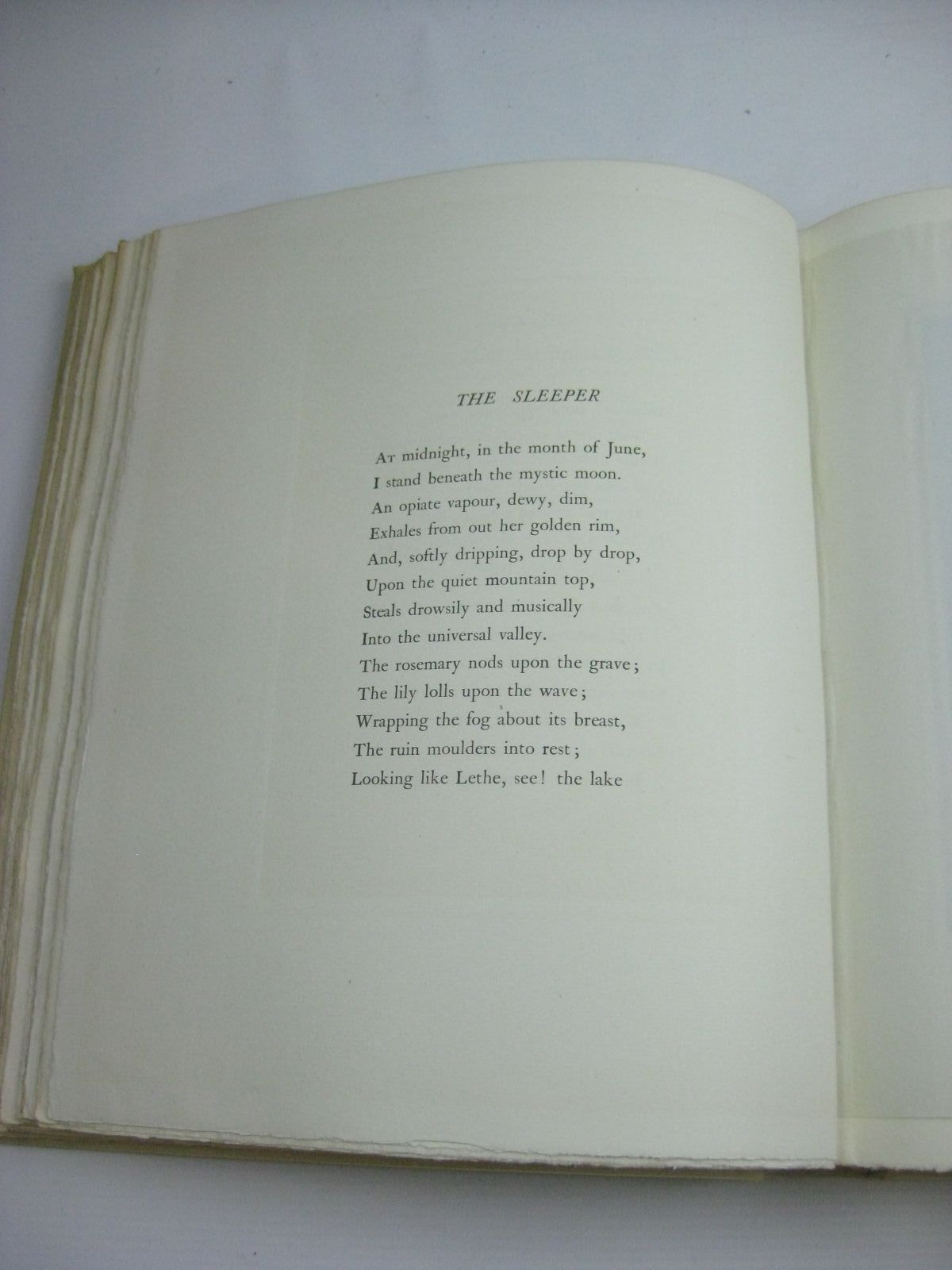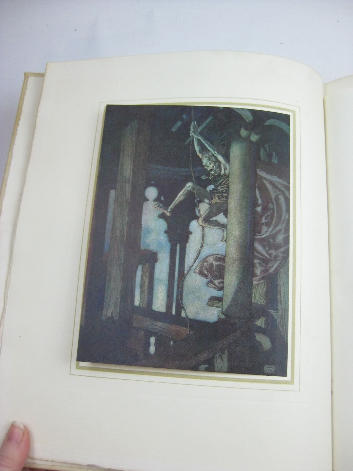 Very good condition. Signed, limited edition (of 750 copies) Large, heavy format. White vellum with all-over gilt Dulac design of clusters of bells to front cover. 28 colour tipped-in colour plates, protected by captioned tissue guards. 10 black ink headpieces on tan backround and Poe's portrait on title page.
