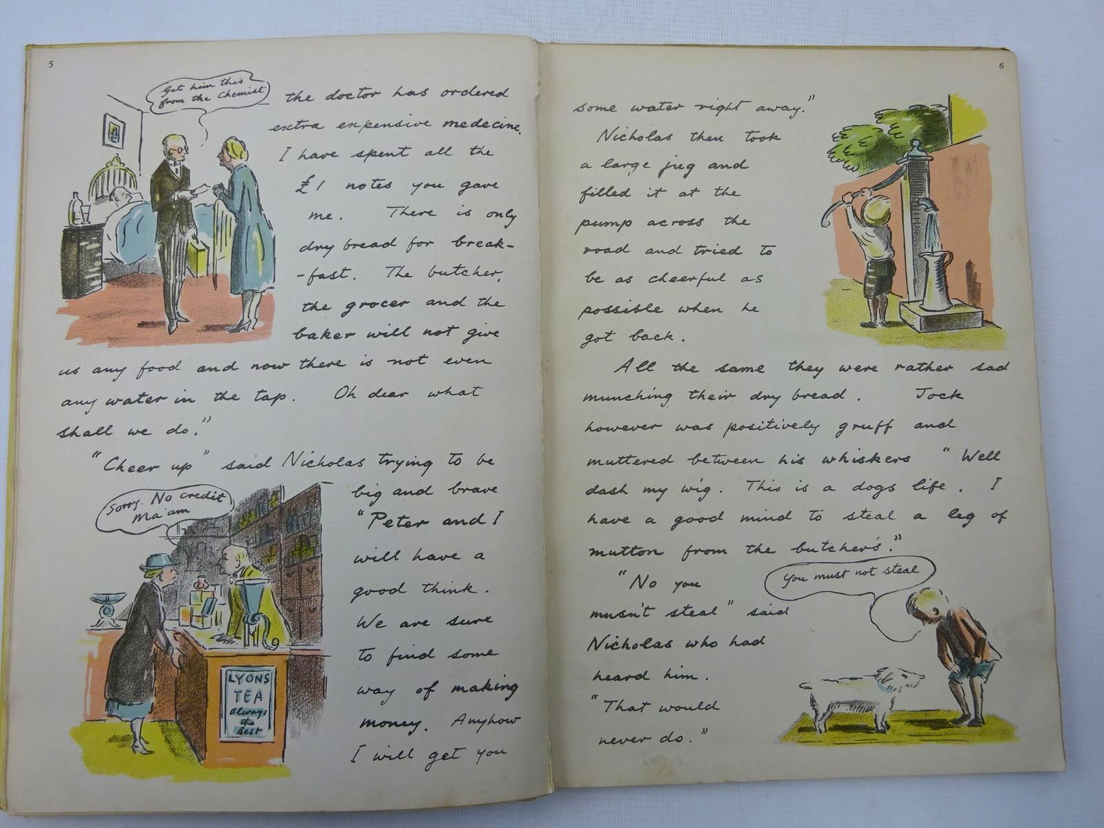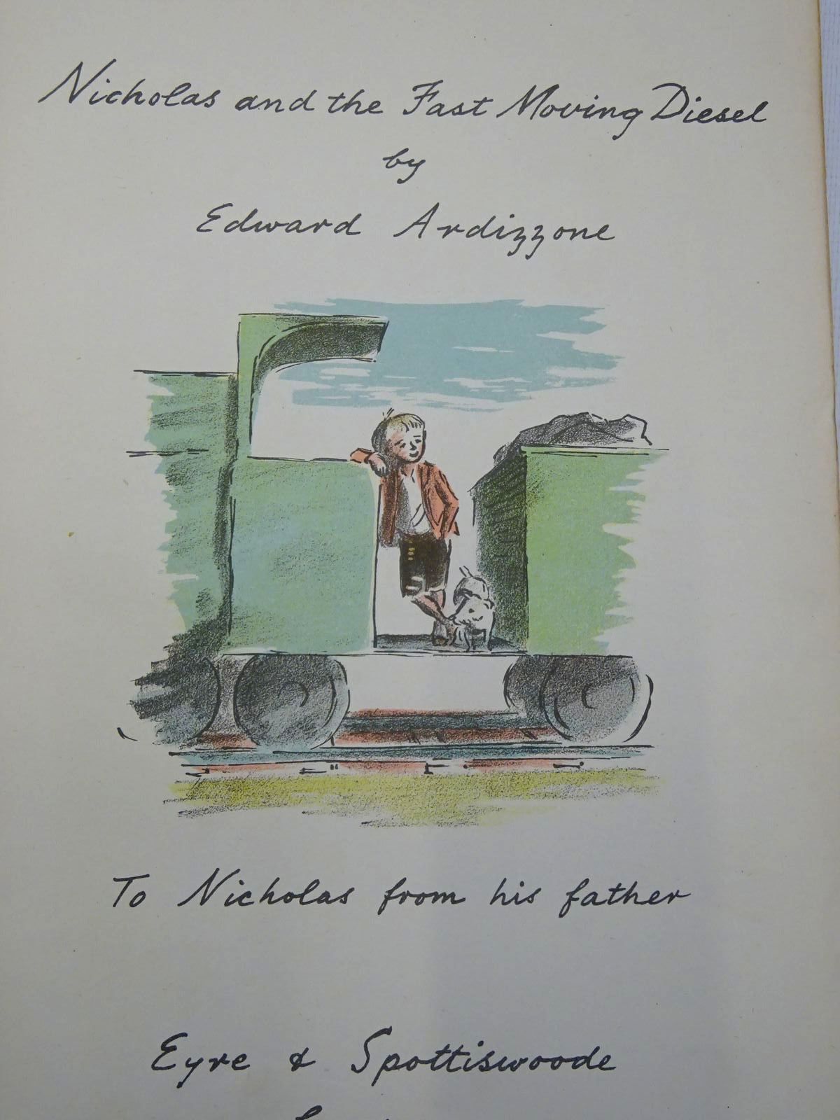 Spine repaired with 3" loss to top and remains of tape repairs. Corners worn. Boards slightly faded and discoloured with remains of tapemarks to spine edges. One page has closed tape repair to top margin. Front endpaper is foxed. Overall a decent copy of an extremely rare Ardizzone title.