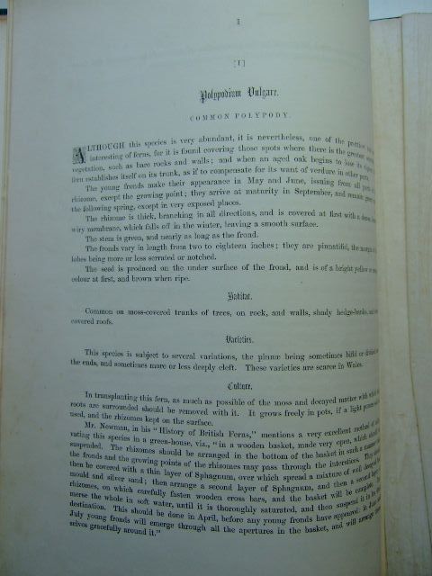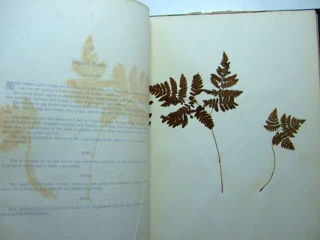 Good condition. Large format. Green cloth with gilt titles and decorations. Colour title page. A collection of 34 ferns, pressed into the book, with tissue-guards and a full page description for each fern type.