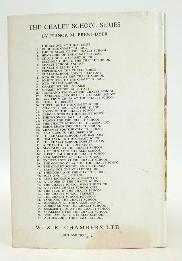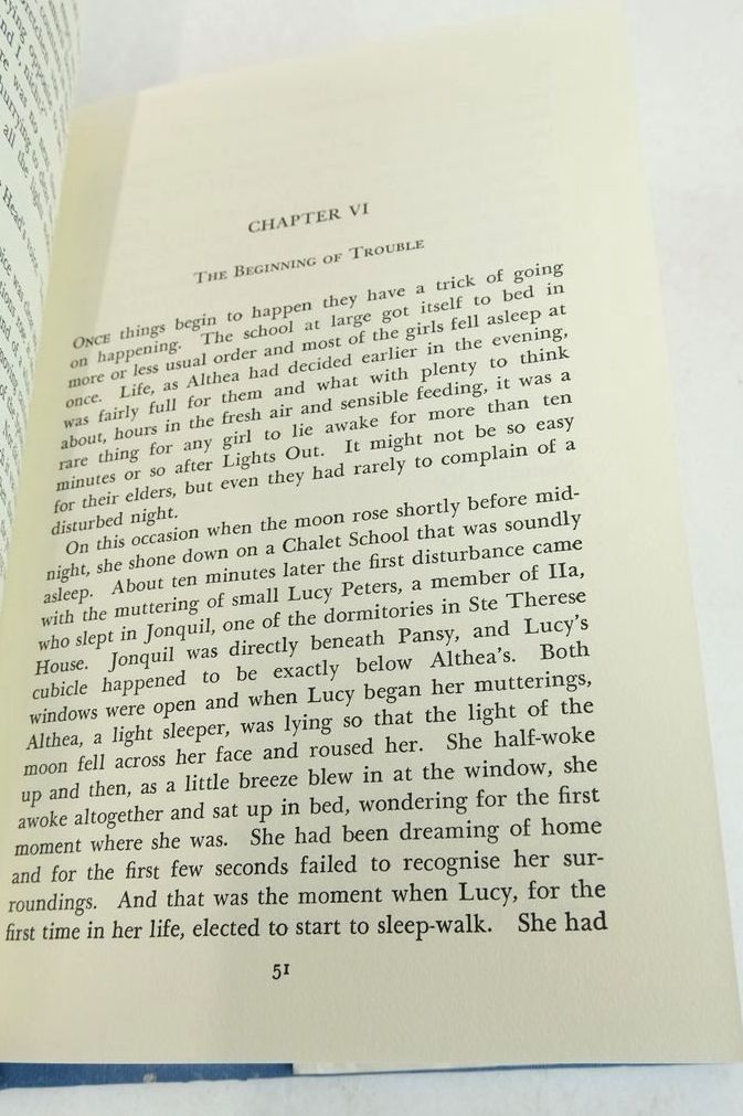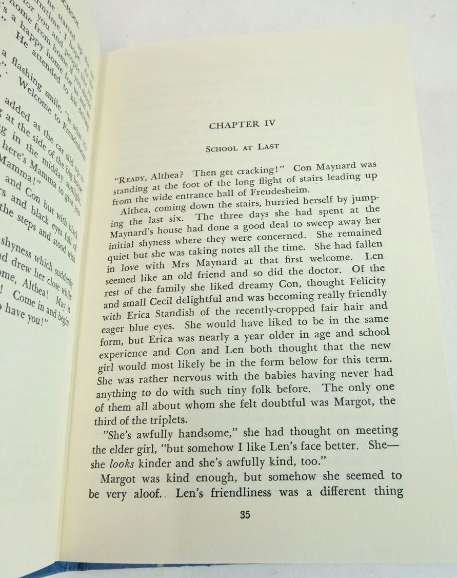 Nearly fine condition in a very good dustwrapper. A chain of family events lead Althea Glenyon to choose to go to the Chalet School. She makes friends with Len and her family and with the girls of Upper IVB. Blue boards, with gilt title and border on spine. B/w frontis plate. 173 pages. 7.5 x 5".