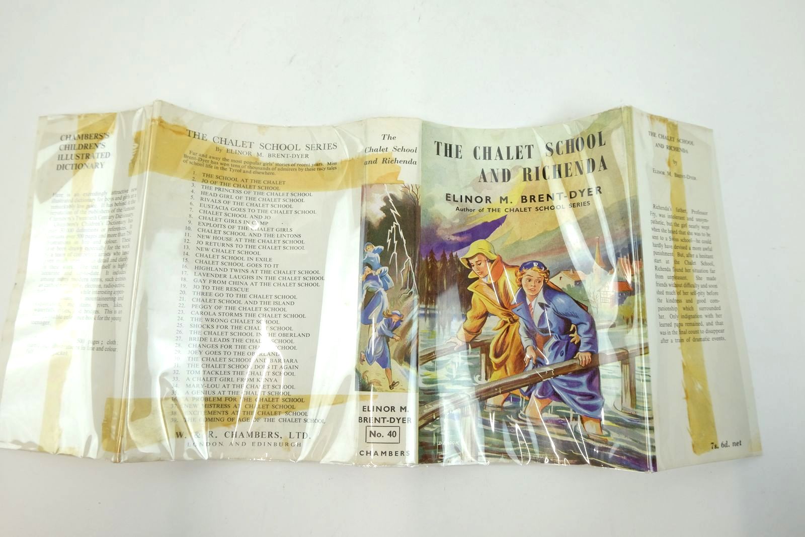 Very good condition in a almost very good dustwrapper. Richenda nearly wept when her father told her she was to be sent to a Swiss school - he could hardly have devised a more awful punishment... No. 40 in the Chalet School series. Blue covers, gilt title and border lines to spine. B/w frontis by D. Brook. 224 pages.