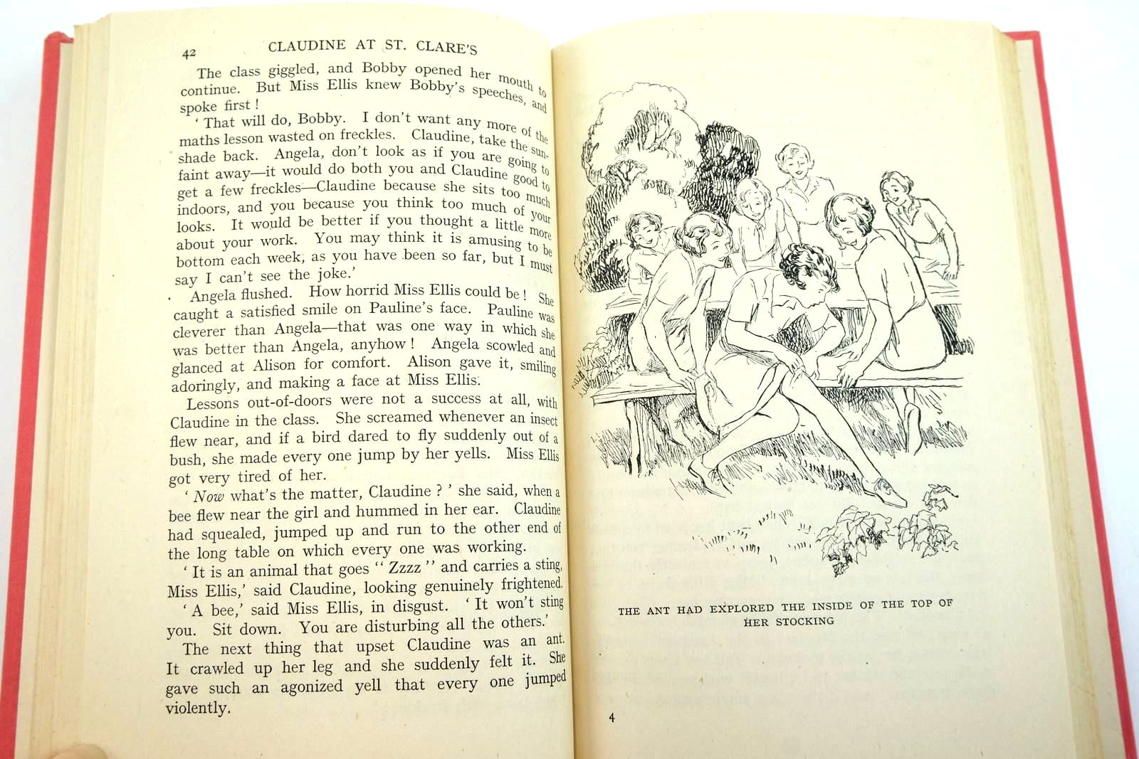 Very good condition in a almost very good dustwrapper. The 5th story of St. Clare's. Pink cloth, dark titles and vignette. B/w illustrations. 153 pages.
