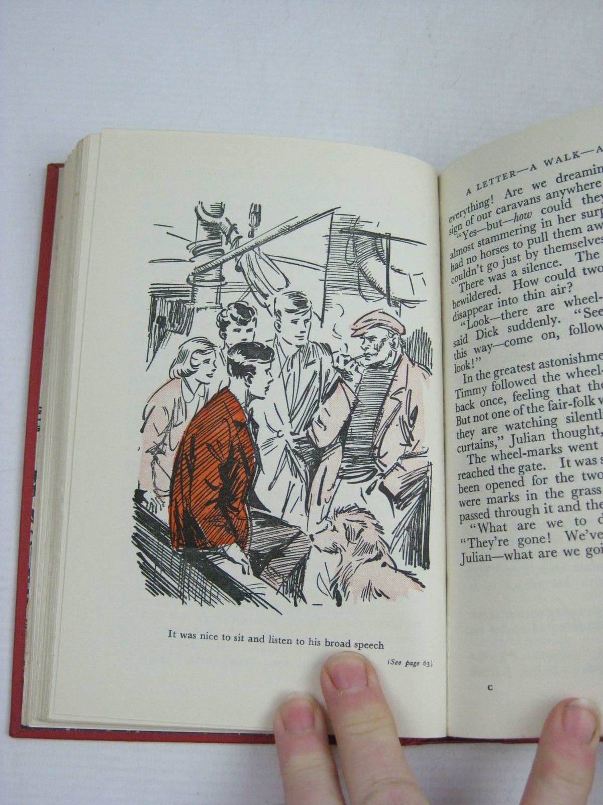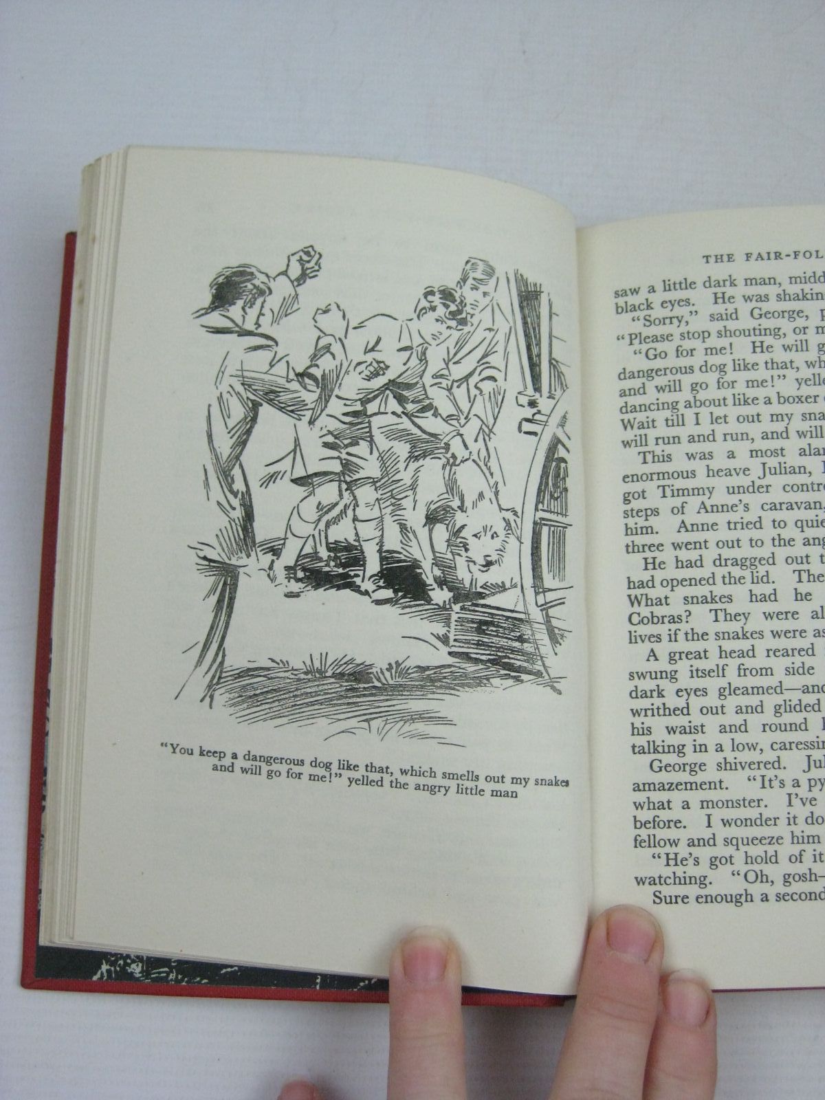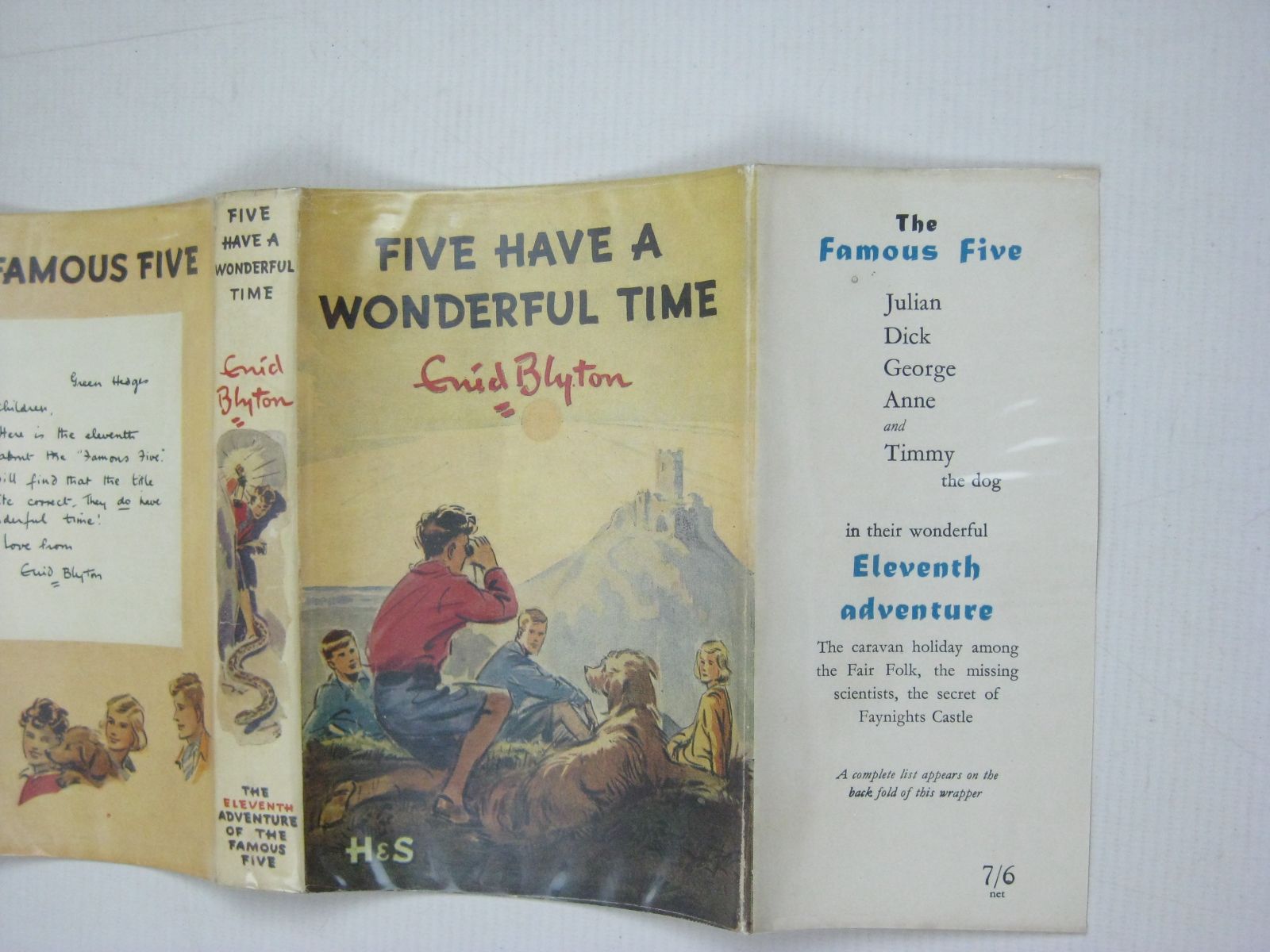 Nearly fine condition in a slightly better than very good dustwrapper. The 11th Famous Five adventure. Red boards, black lettering. Blue and black pictorial endpapers. B/w and two-tone illustrations. 192 pages.
