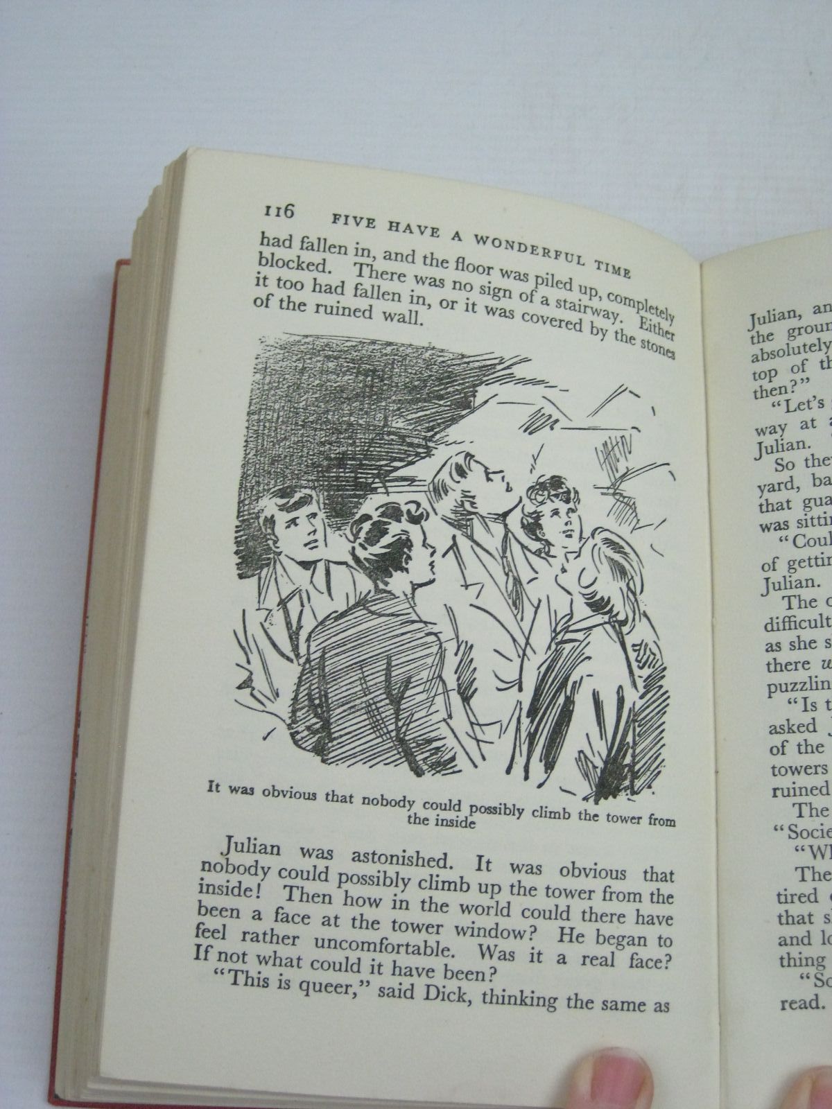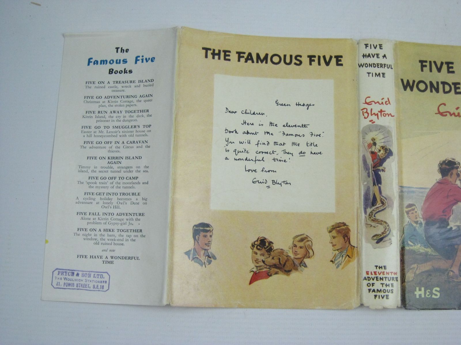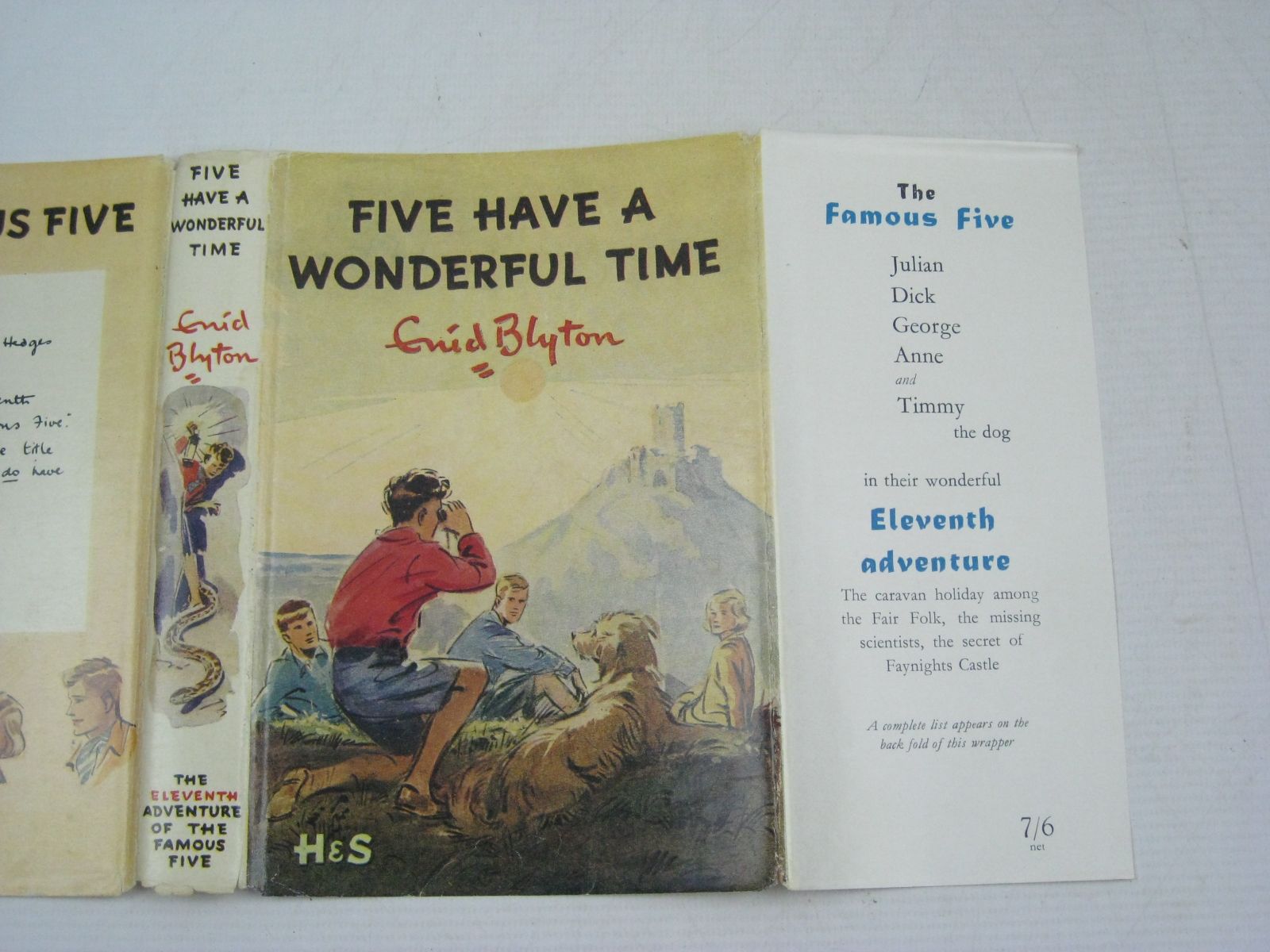 Very good condition in a very good dustwrapper. The 11th Famous Five adventure. Red boards, black lettering. Blue and black pictorial endpapers. B/w and two-tone illustrations. 192 pages.