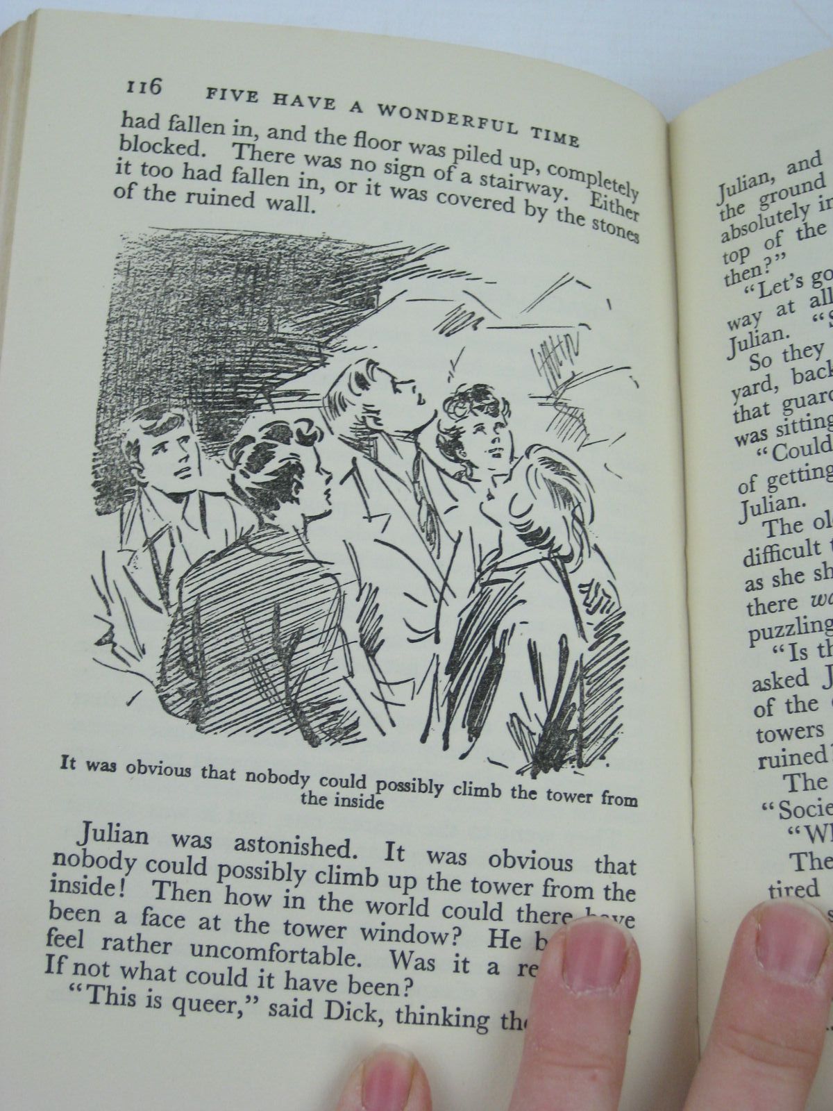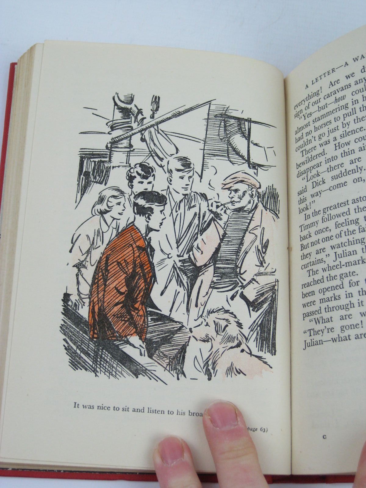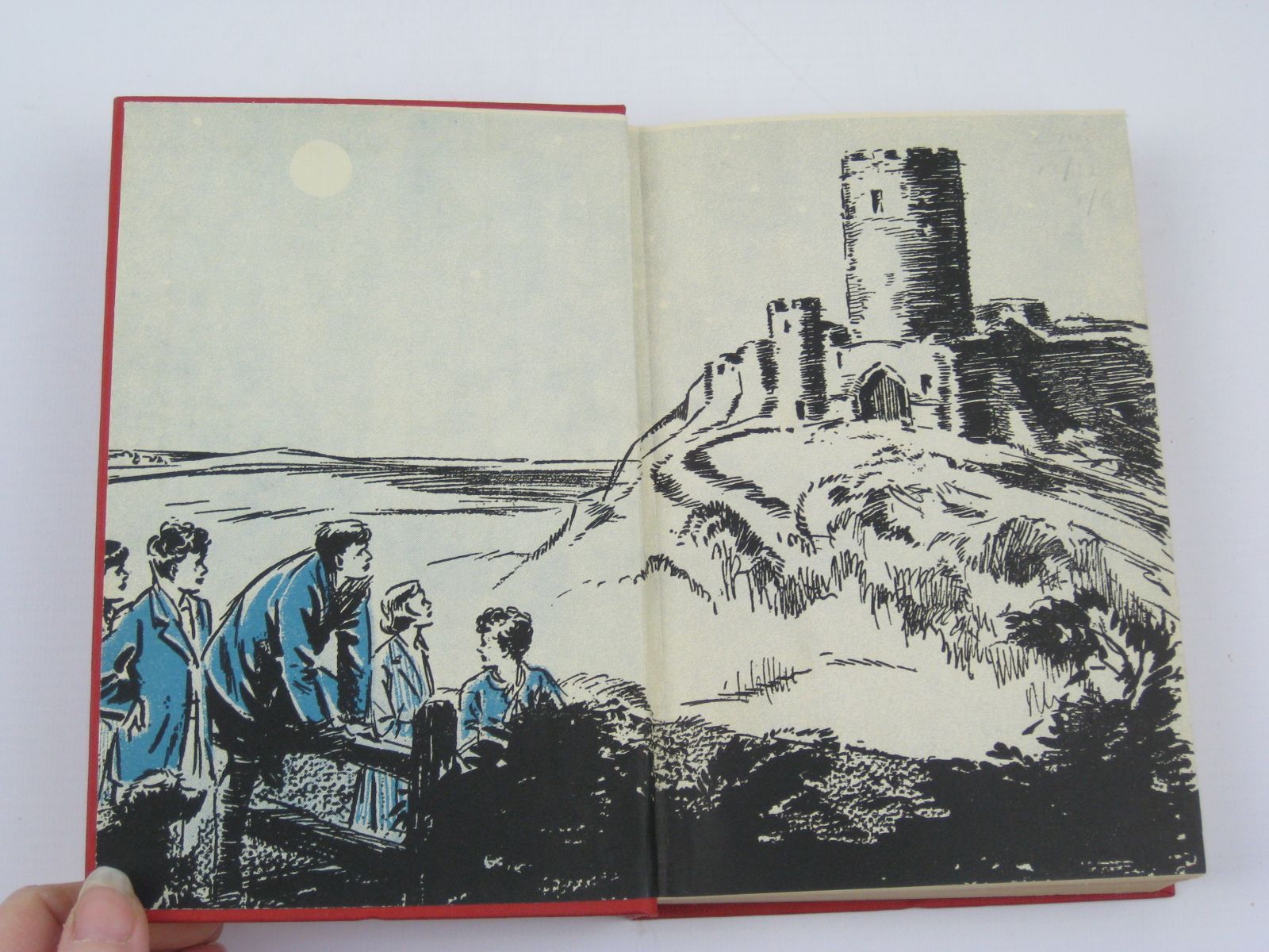 Very good condition in a almost very good dustwrapper. The 11th Famous Five adventure. Red boards, black lettering. Blue and black pictorial endpapers. B/w and two-tone illustrations. 192 pages.