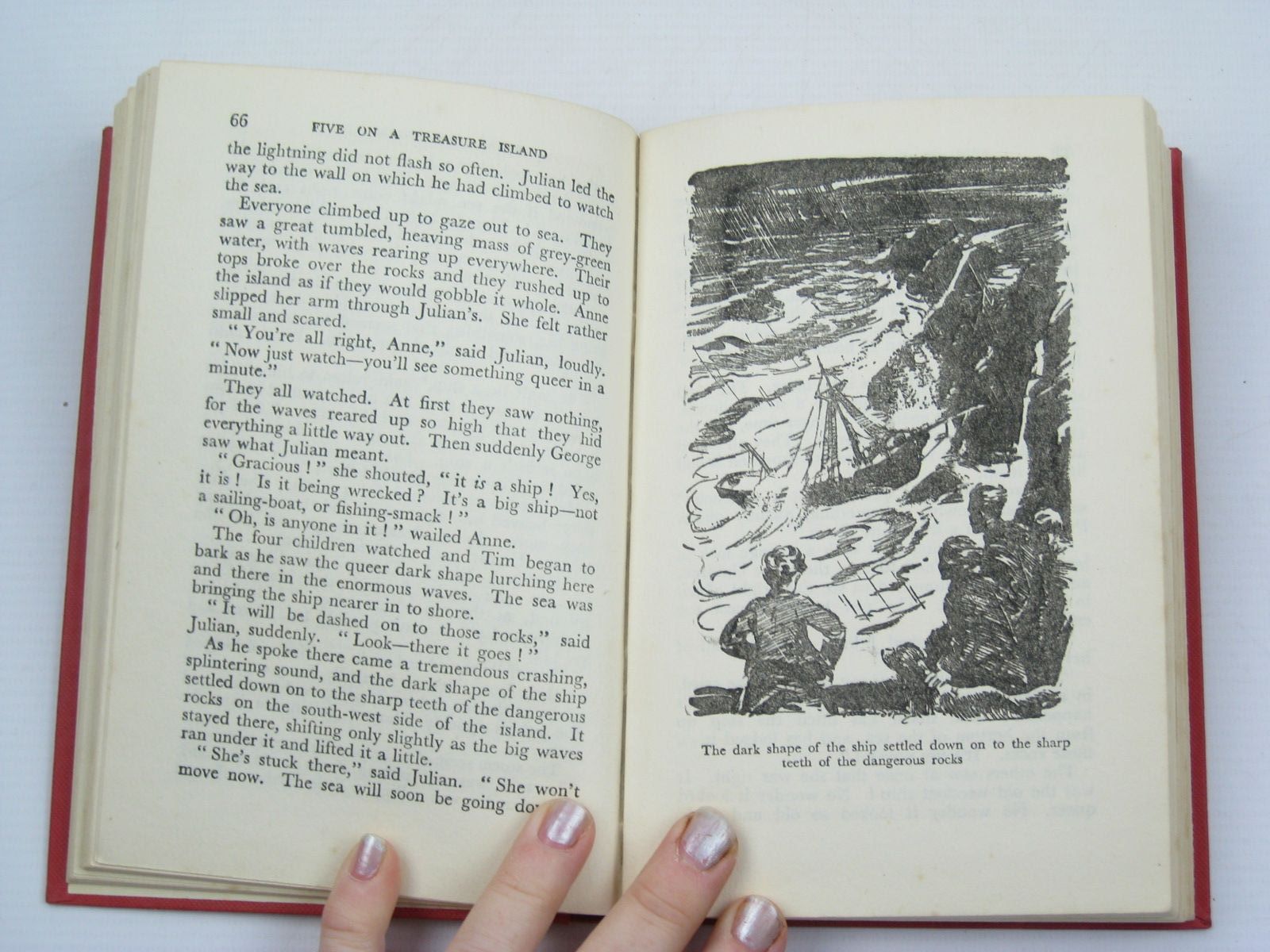 Very good condition in a very good dustwrapper. The Famous Five's first adventure featuring a ruined castle, a wreck and buried treasure. Red boards, black title to spine and front cover. Plain endpapers. 32 full-page b/w illustrations.
