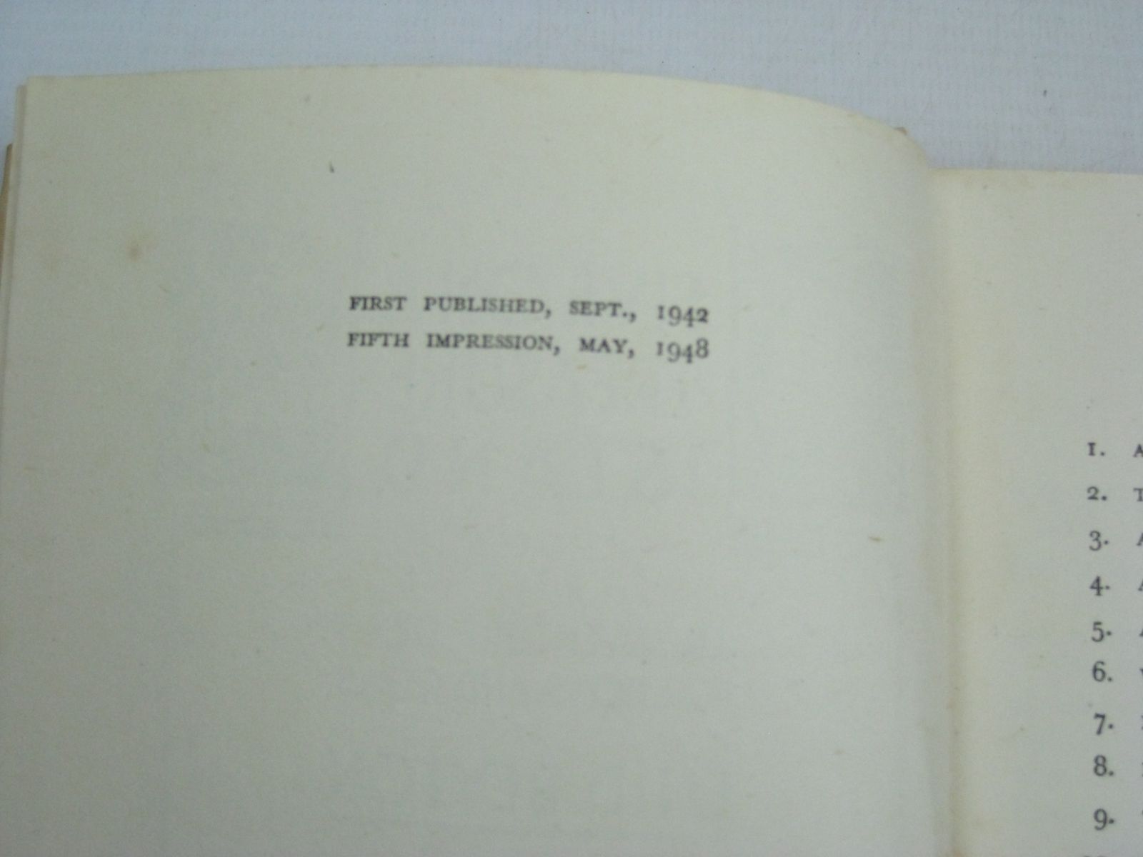 Spine bumped with slight discolouration to top and tail. A couple of tiny spots to covers. Inscription in ink to verso of front free-endpaper. Foxing to endpapers, prelims and textblock. A couple of page corner tip very lightly creased. Dustwrapper is stained and creased to front flap, is slightly worn to spine and corners with slight loss and has a few small closed edge tears.