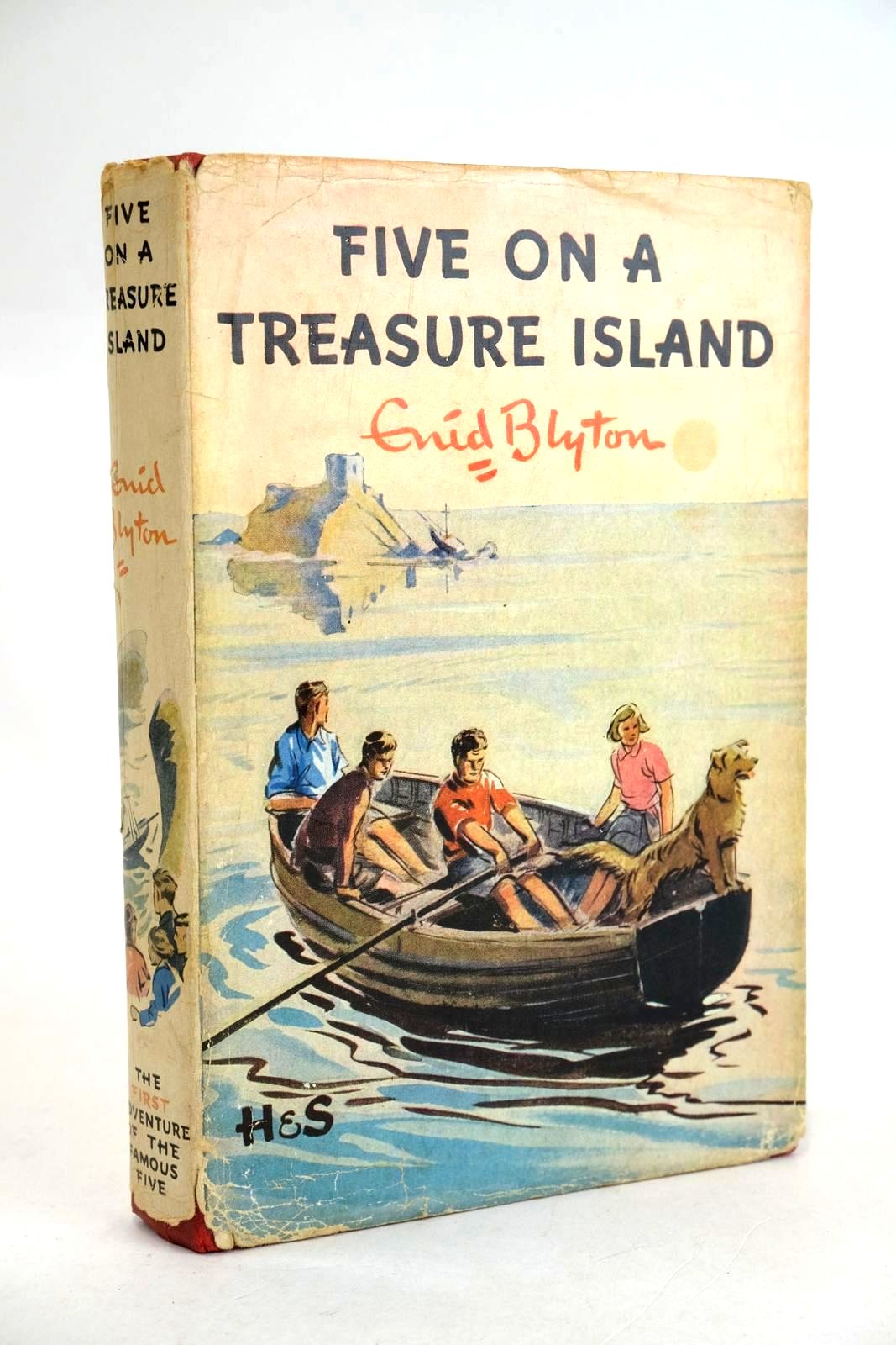 Very good condition in a almost very good dustwrapper. The very first Famous Five book in which the Five encounter a ruined castle, a wreck and buried treasure. Red boards. 191 pages. Blue pictorial endpapers showing the island. B/w illustrations.