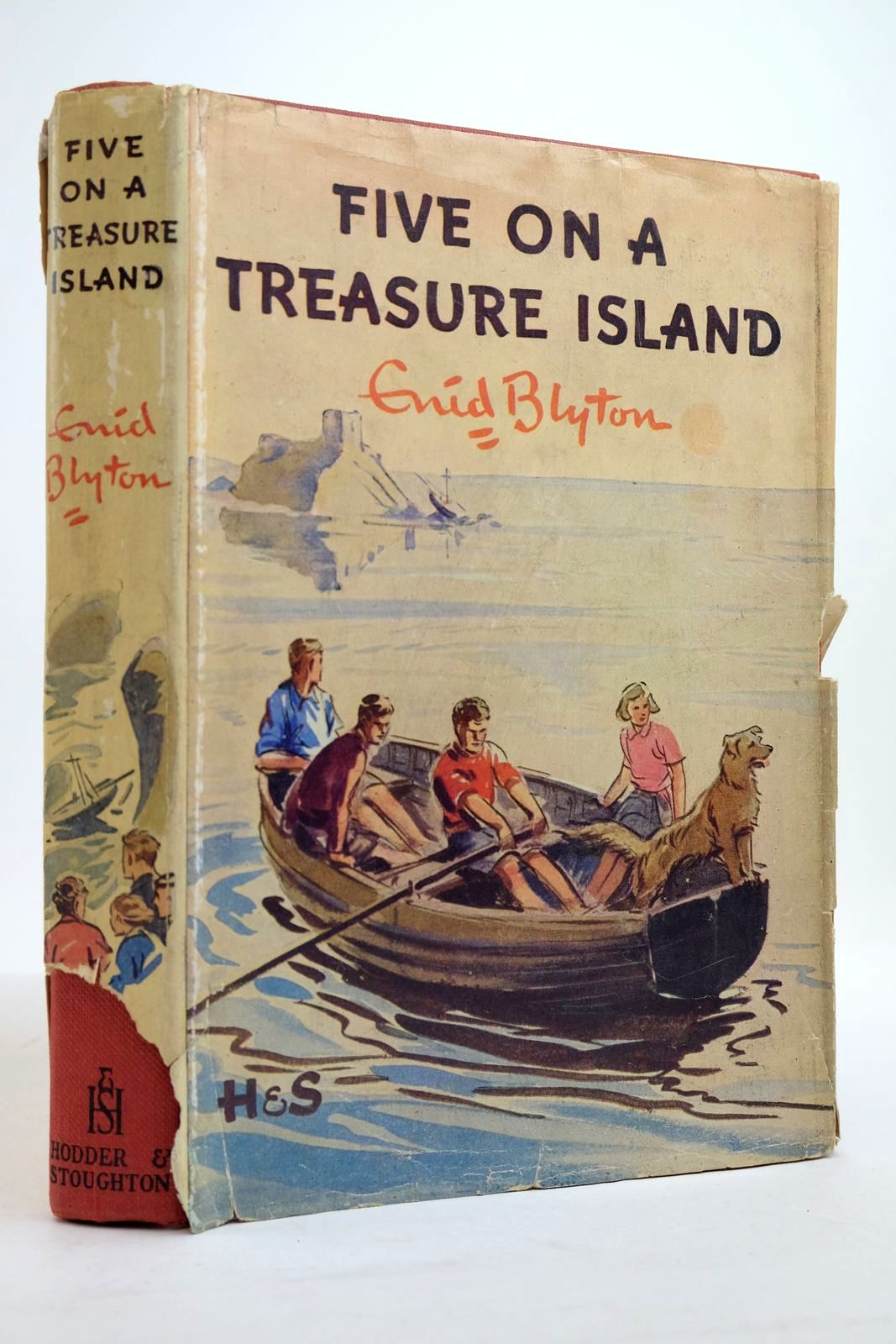 Very good condition in a good dustwrapper. The very first Famous Five book in which the Five encounter a ruined castle, a wreck and buried treasure. Red boards. 191 pages. Blue pictorial endpapers showing the island. B/w illustrations.