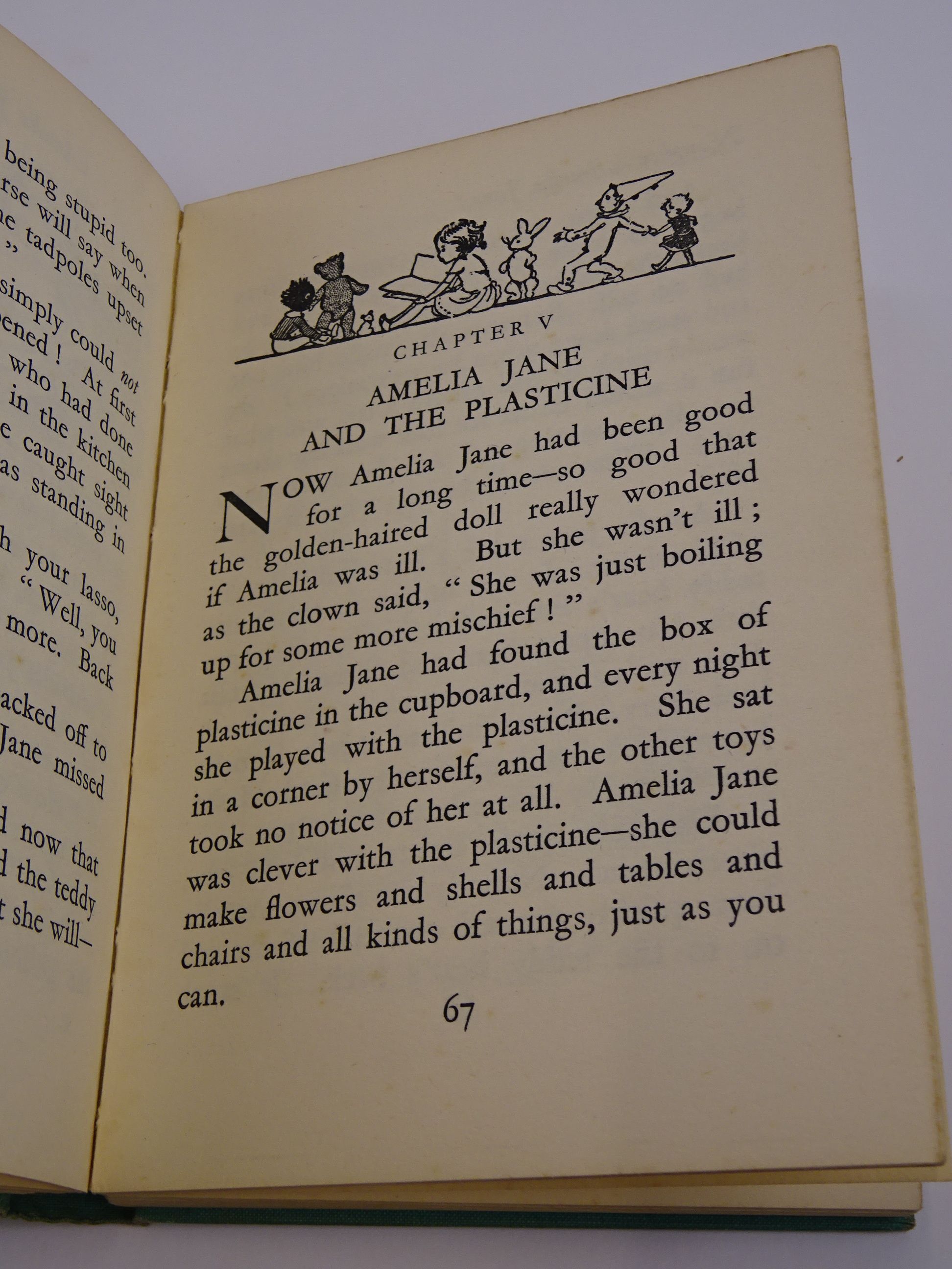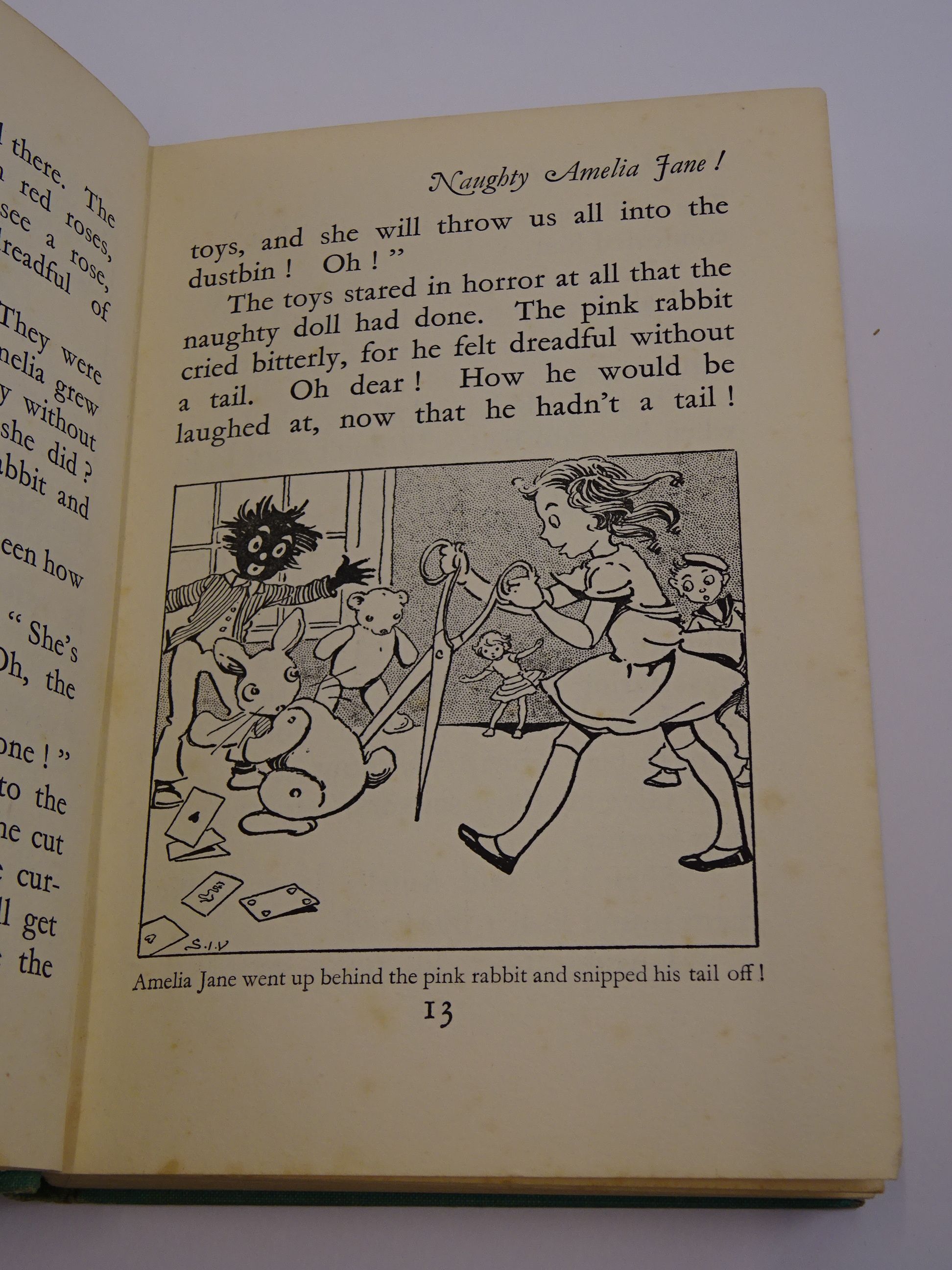 Very good condition in a good dustwrapper. Amelia Jane is big naughty doll whose mischievous tricks upset all the toys in the nursery. Green cloth, black titles. Black and white illustrations. 160 pages.