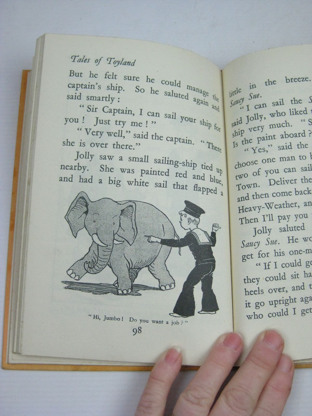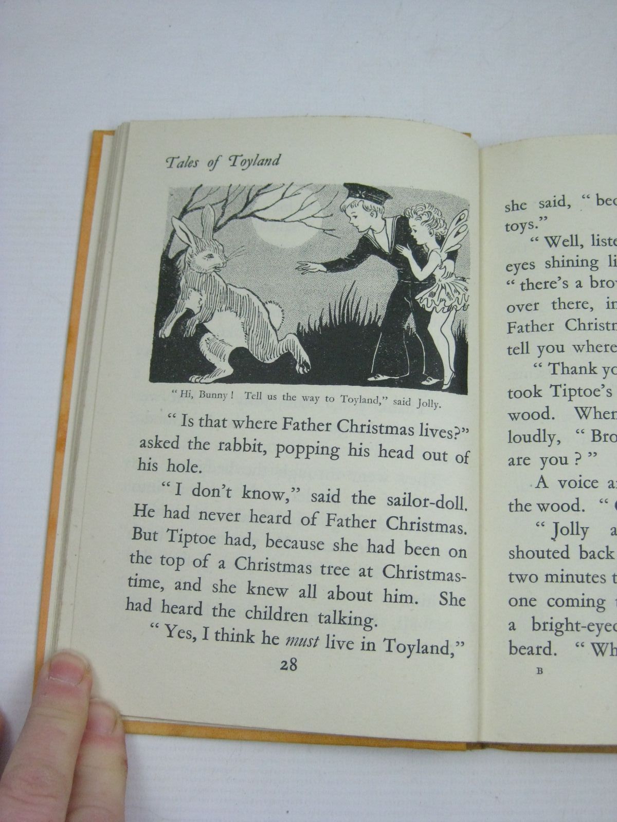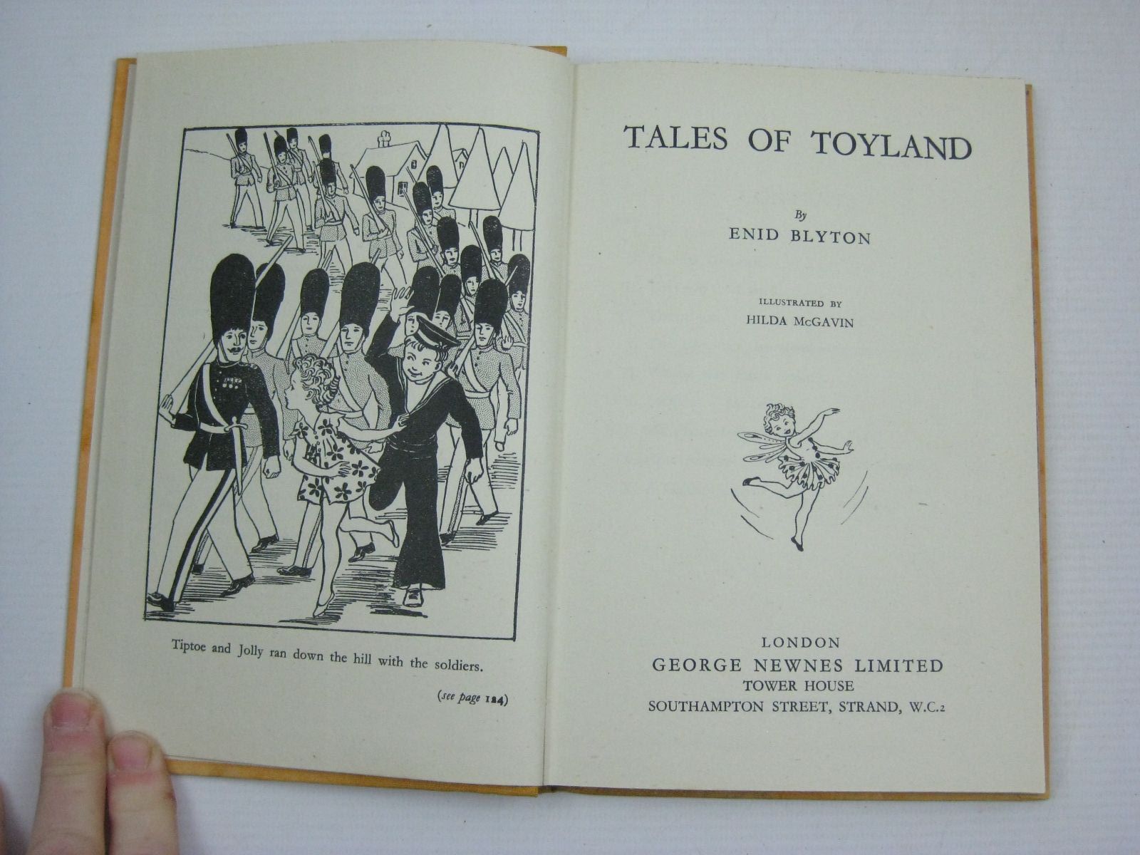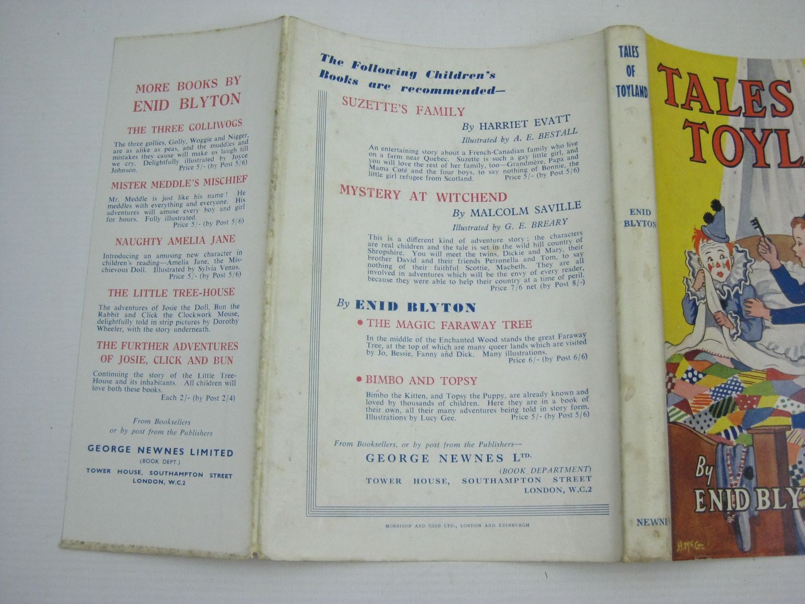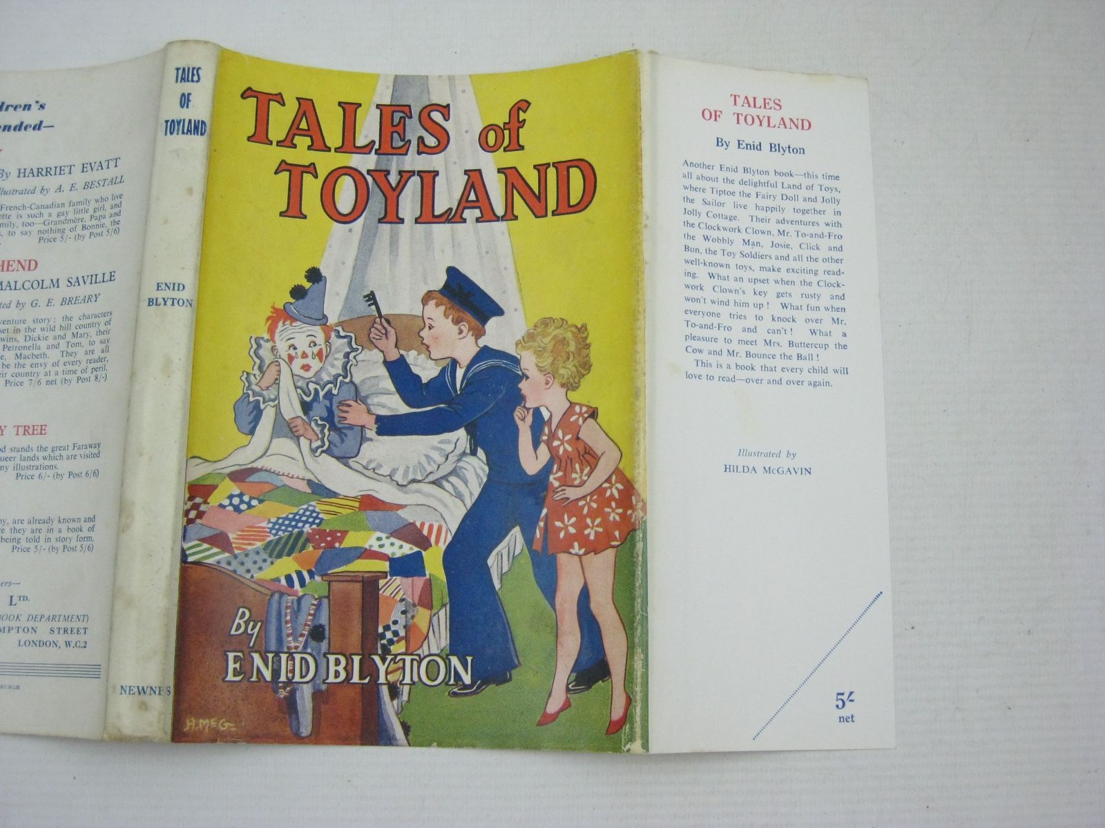 Almost very good condition in a almost very good dustwrapper. Another Enid Blyton book - this time all about the delightful Land of Toys, where Tiptoe the Fairy Doll and Jolly the Sailor live happily together in Jolly Cottage... Light orange cloth, red titles. B/w illustrations. Large text. 152 pages.