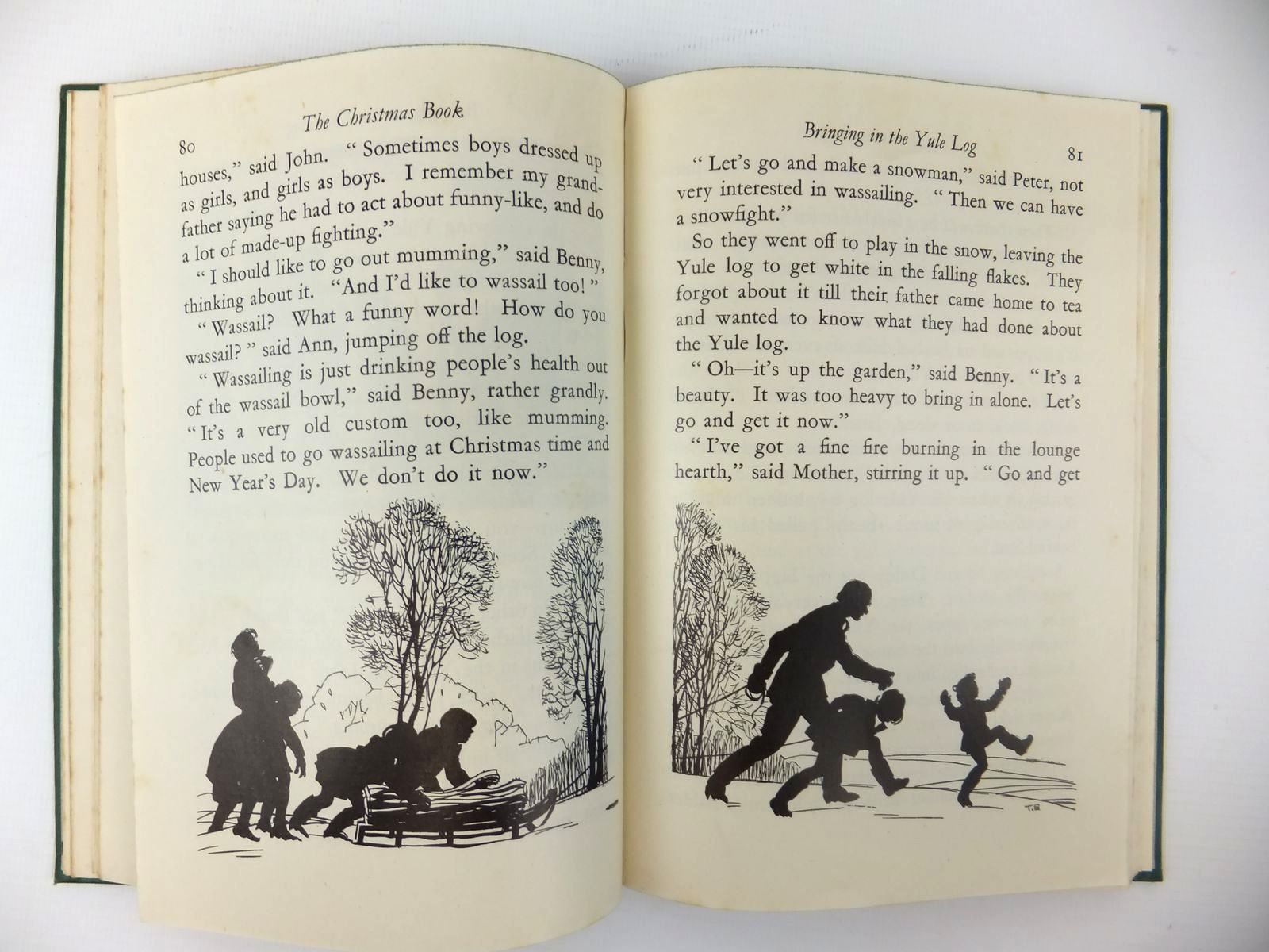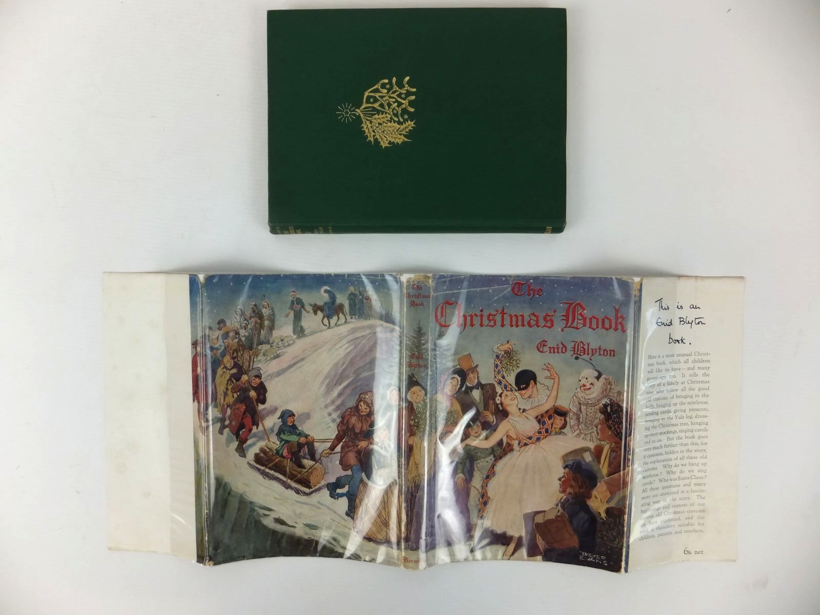 Very good condition in a very good dustwrapper. This book tells the story of a family who like to keep Christmas properly, and in the course of the story, most of the old customs are explained. Green cloth, gilt title and vignette. Colour pictorial endpapers. B/w pictures and silhouettes. 179 pages.