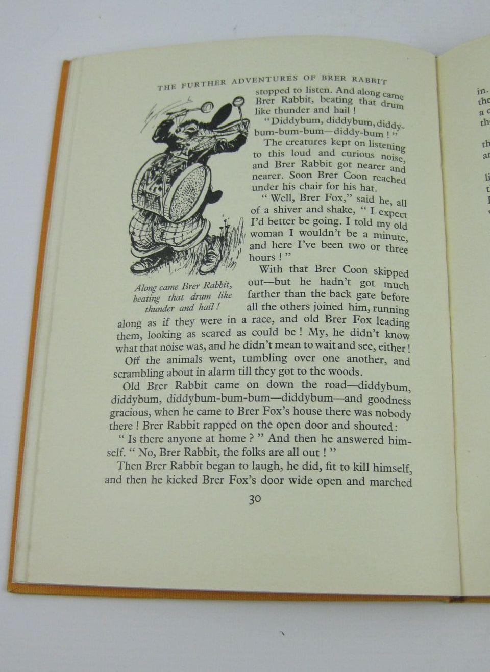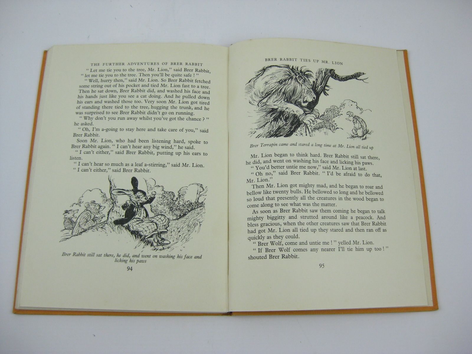 Very good condition in a almost very good dustwrapper. Being More Tales of Brer Rabbit and his friends retold from the original. Orange cloth, black titles. A slim volume 96 pages. B/w illustrations. 10" x 7".