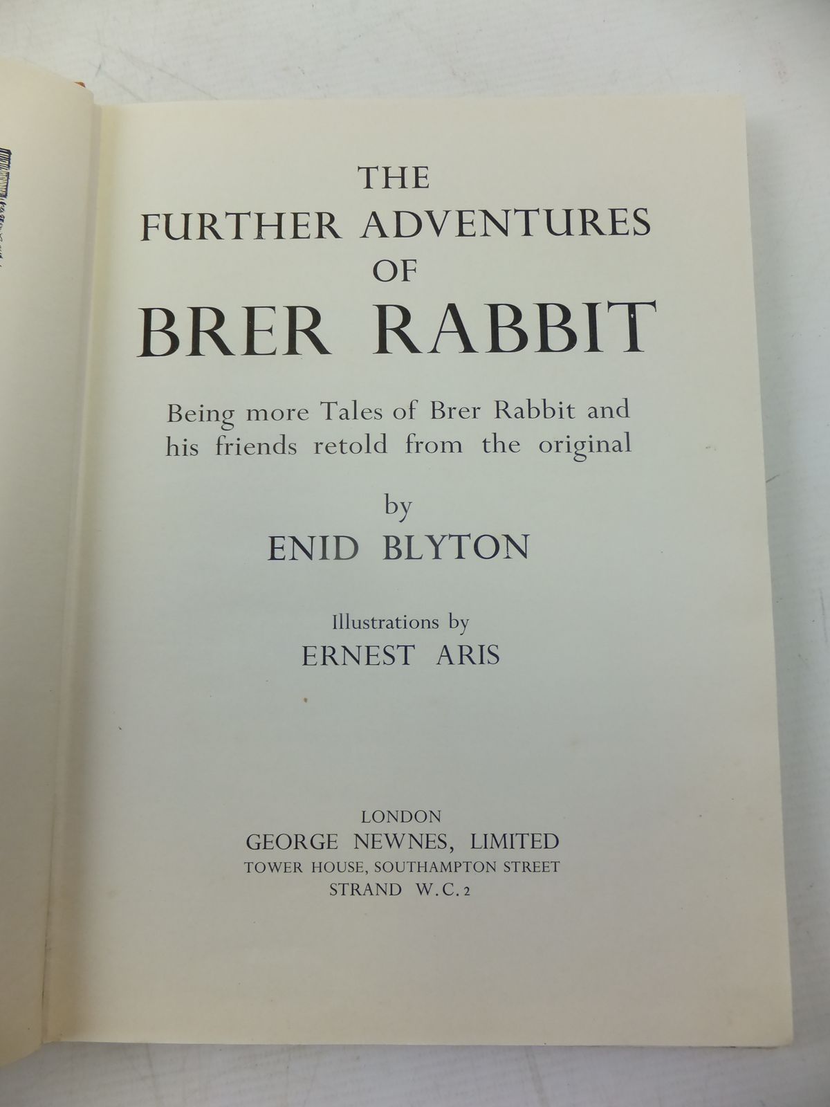 Slightly better than very good condition in a very good dustwrapper. Being More Tales of Brer Rabbit and his friends retold from the original. Orange cloth, black titles. A slim volume 96 pages. B/w illustrations. 10" x 7".