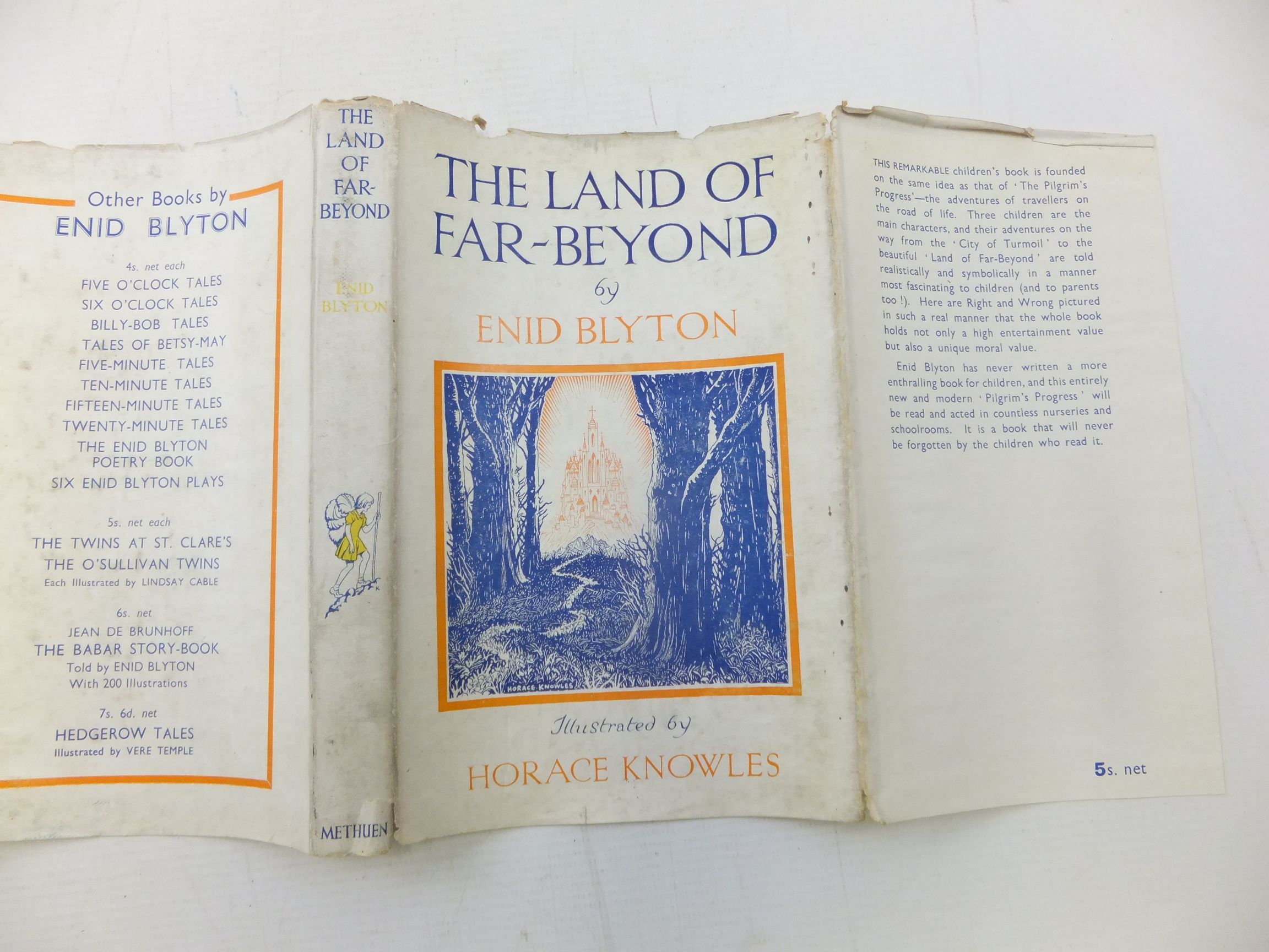 Very good condition in a almost very good dustwrapper. Enid Blyton's version of 'The Pilgrim's Progress' in which three children have many strange adventures from the City of Turmoil to the Land of Far-Beyond. Cream cloth, blue titles and vignette to front cover. Full-page b/w illustrations. 163 pages.