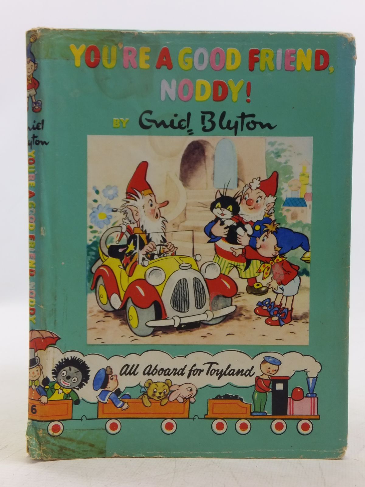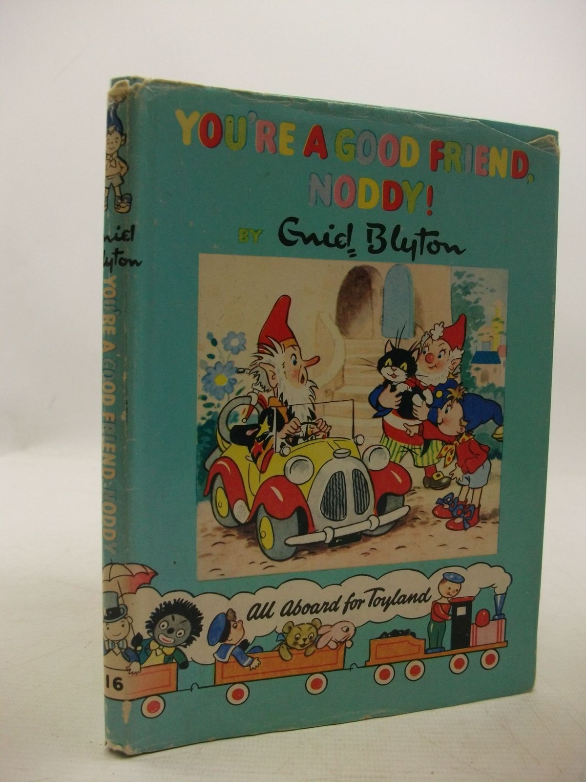 Pale green pictorial boards. Colour illustrations. Noddy Book no. 16. Colour title to front and spine. ISBN: 0361004176. Bumping and wear to spine and corners. Name in ink to belongs to box. Ink tick and underlining to title page. Foxing to outer page edges. Wrapper is faded with edge-torn and chipped; a little loss; some tape repairs and marks.