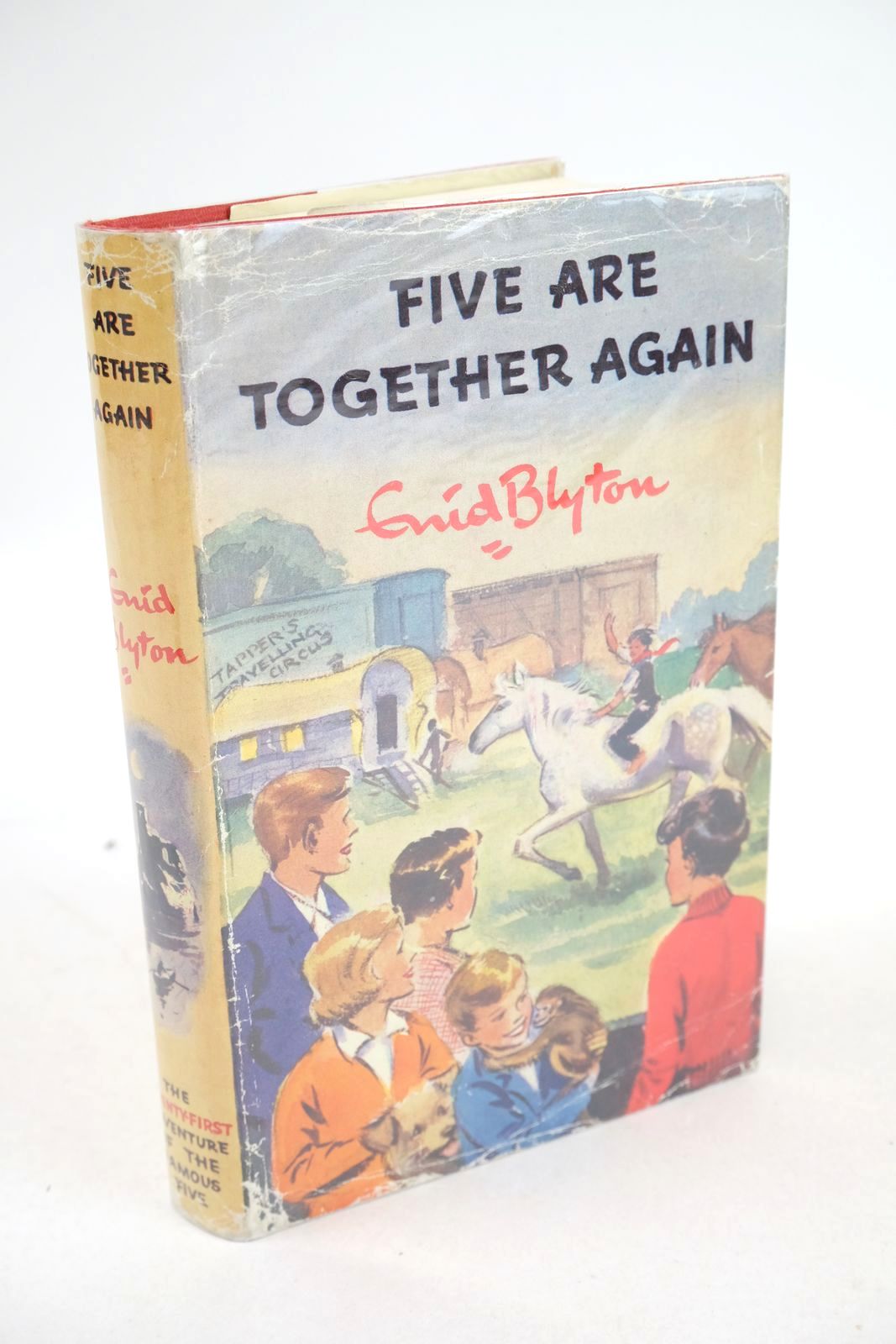 The 15th Famous Five adventure which all began because of Timmy's wounded ear and the collar he had to wear... Red boards, black lettering. Pictorial blue and black endpapers. Two-tone & b/w illustrations throughout. 182 pages. 2nd impression. Spine and corners bumped. Wear to base of spine and to lower rear corner. Endpapers partly browned. Foxing to textblock, prelims and page margins. Some grubby fingermarks to page margins. Dustwrapper is browned on spine and on verso, slight damp staining to top and tail of spine, dustwrapper is edge worn with split to rear edge of spine.