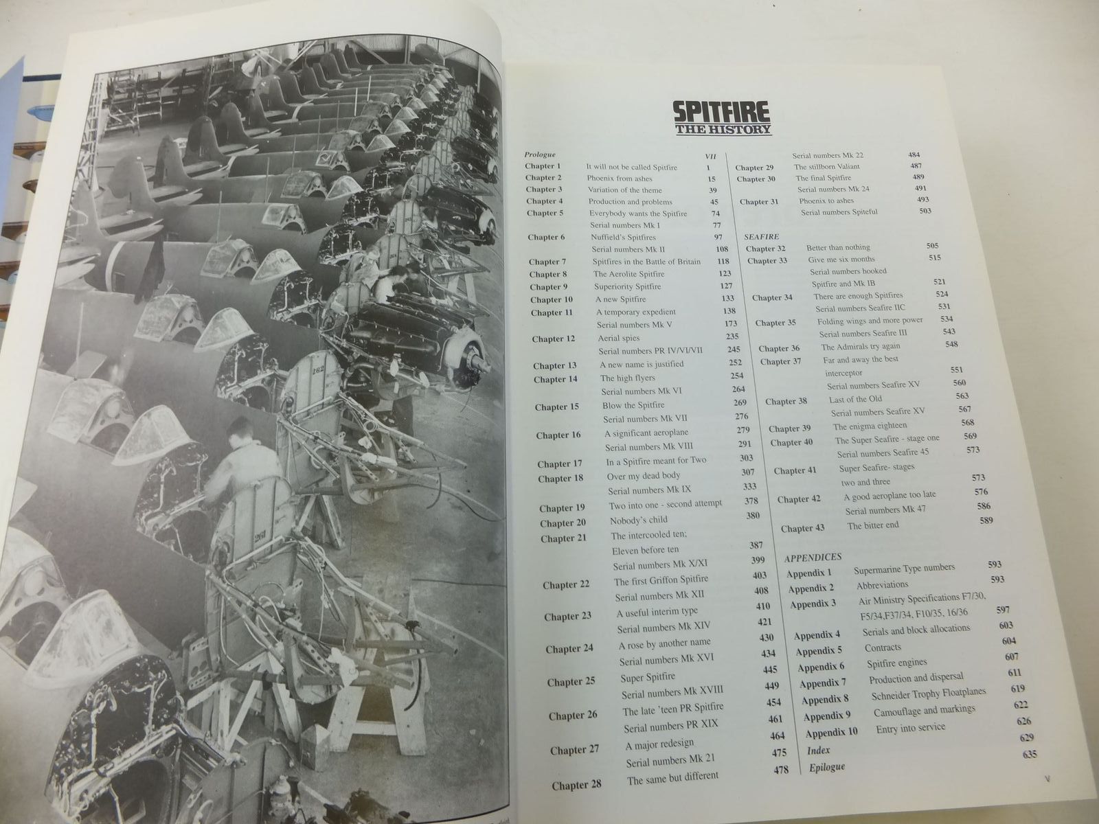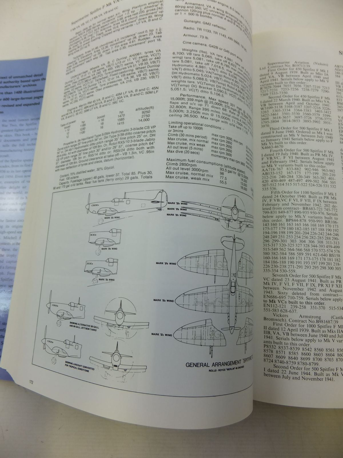 Very good condition in a slightly better than very good dustwrapper. Revised edition. The full technical, design and manufacturing story of all marks and variants of Spitfires, in all configurations and modified forms, plus the Seafire and 'Super Seafire', Spiteful and Seafang. Large, heavy format. Colour pictorial endpapers. B/w photos and sketches. Colour illustrations. XXII and 650 pages.