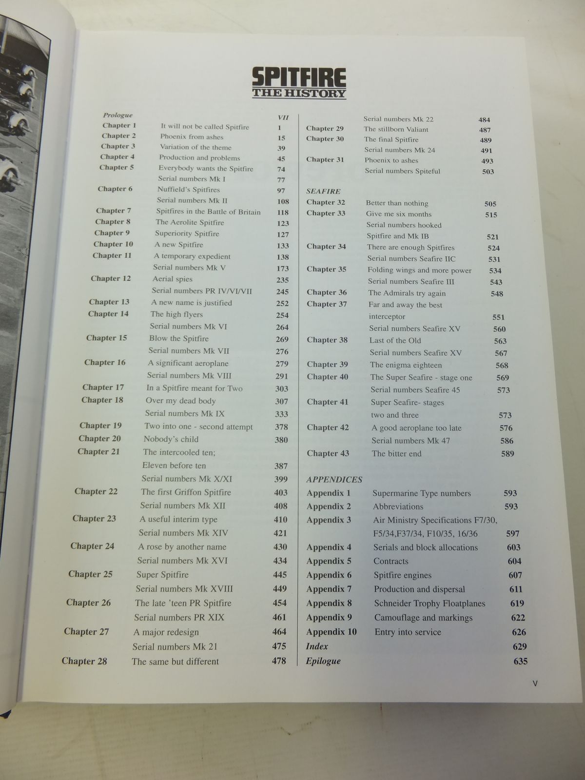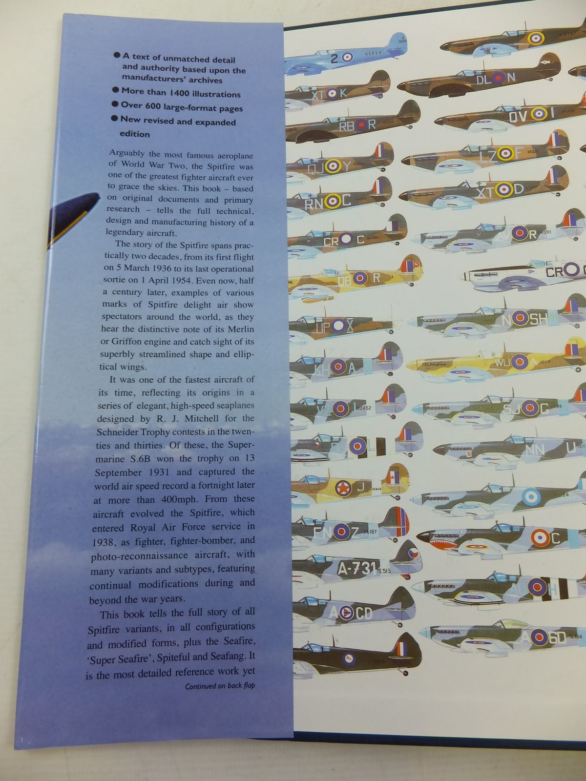 Fine condition in a nearly fine dustwrapper. Revised edition. The full technical, design and manufacturing story of all marks and variants of Spitfires, in all configurations and modified forms, plus the Seafire and 'Super Seafire', Spiteful and Seafang. Large, heavy format. Colour pictorial endpapers. B/w photos and sketches. Colour illustrations. XXII and 650 pages.