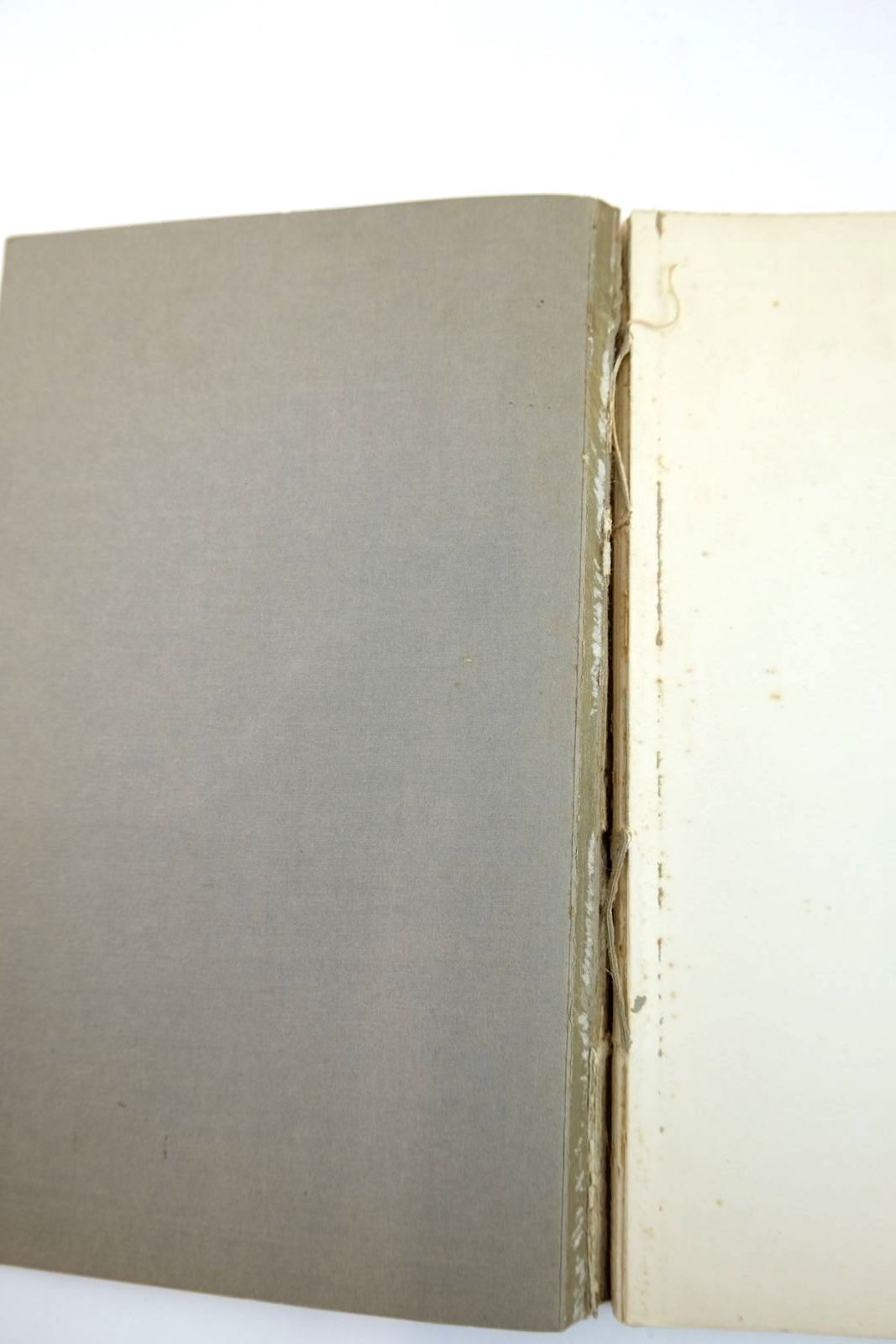 Top 1" of spine has tear vertically and then horizontally. Date in ink to bottom of front cover. Binding is weak - spine is coming away from contents. Some foxing.
