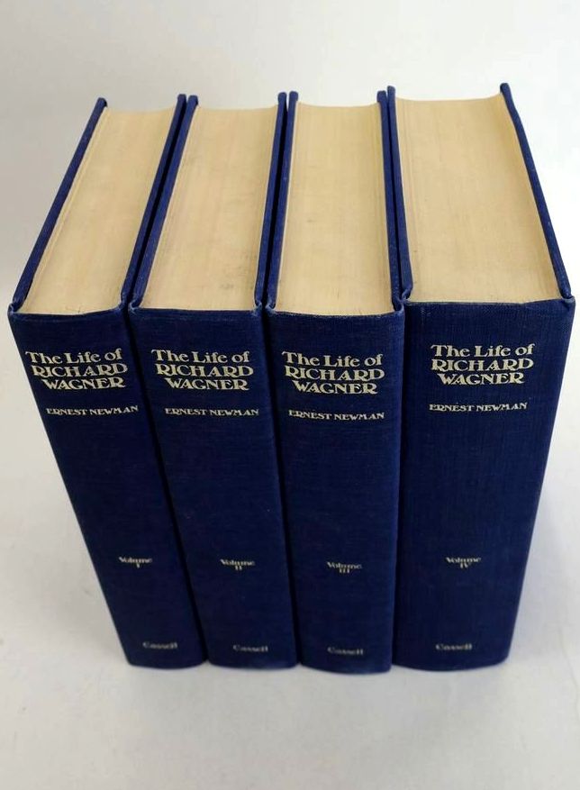 Very good condition. Ernest Newman's four-volume Life of Wagner, originally published between 1933 and 1947, remains a classic work of biography. The culmination of forty years' research on the composer and his works (Newman's first Study of Wagner was first published in 1899), these books present a detailed portrait of perhaps the most influential, the most controversial and the most frequently reviled composer in the whole history of western music. Four volumes, complete. Blue cloth boards, gilt titles to spines.