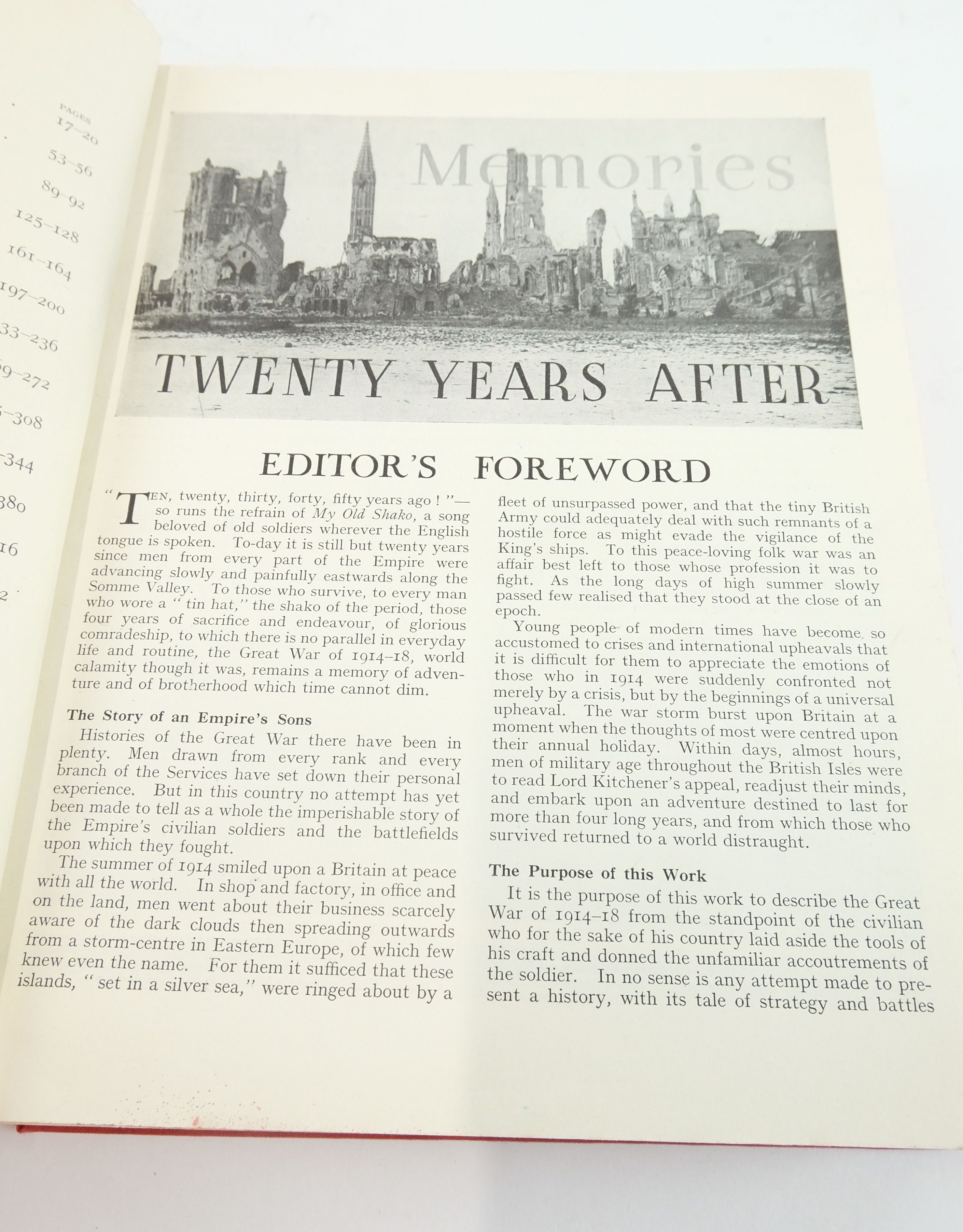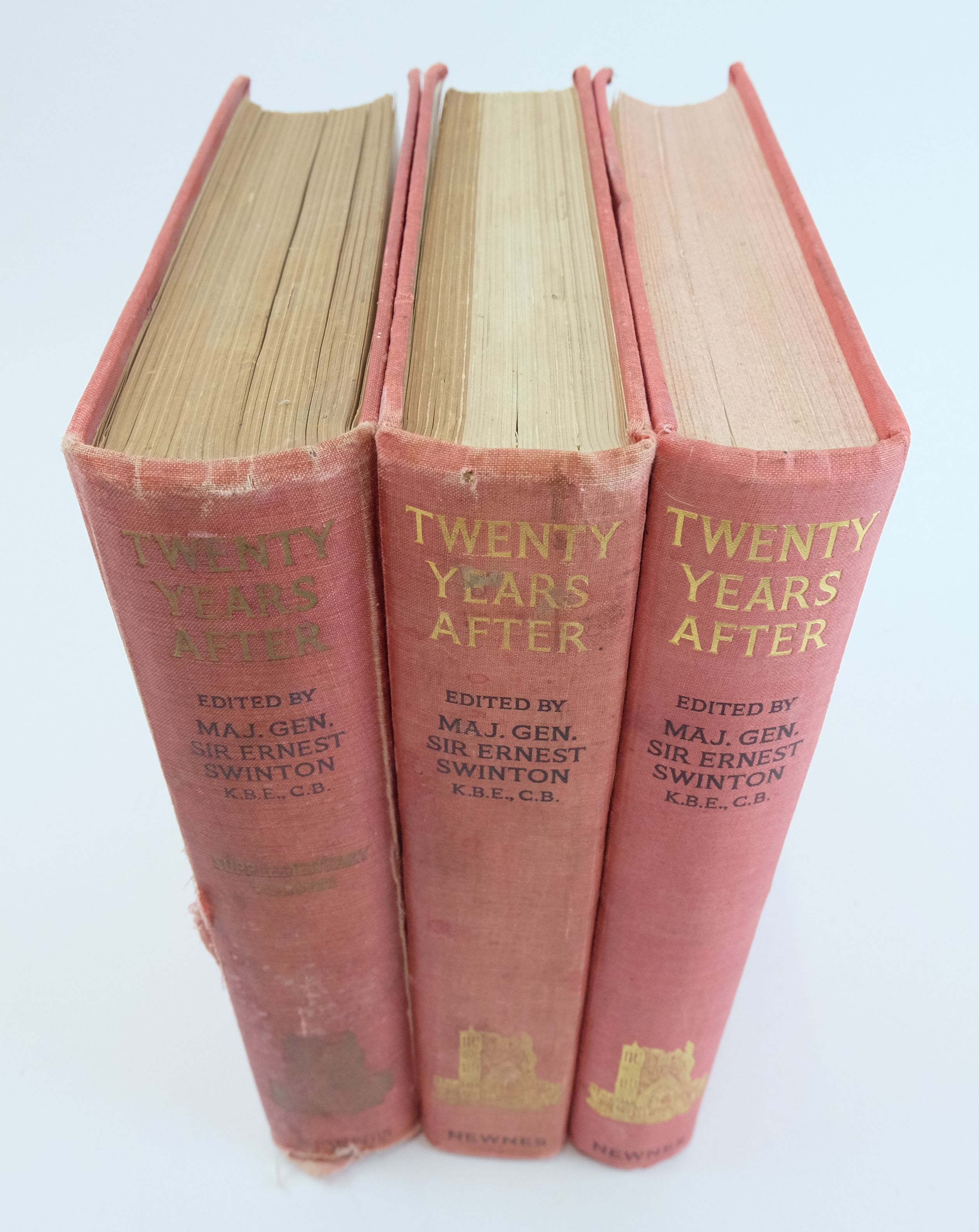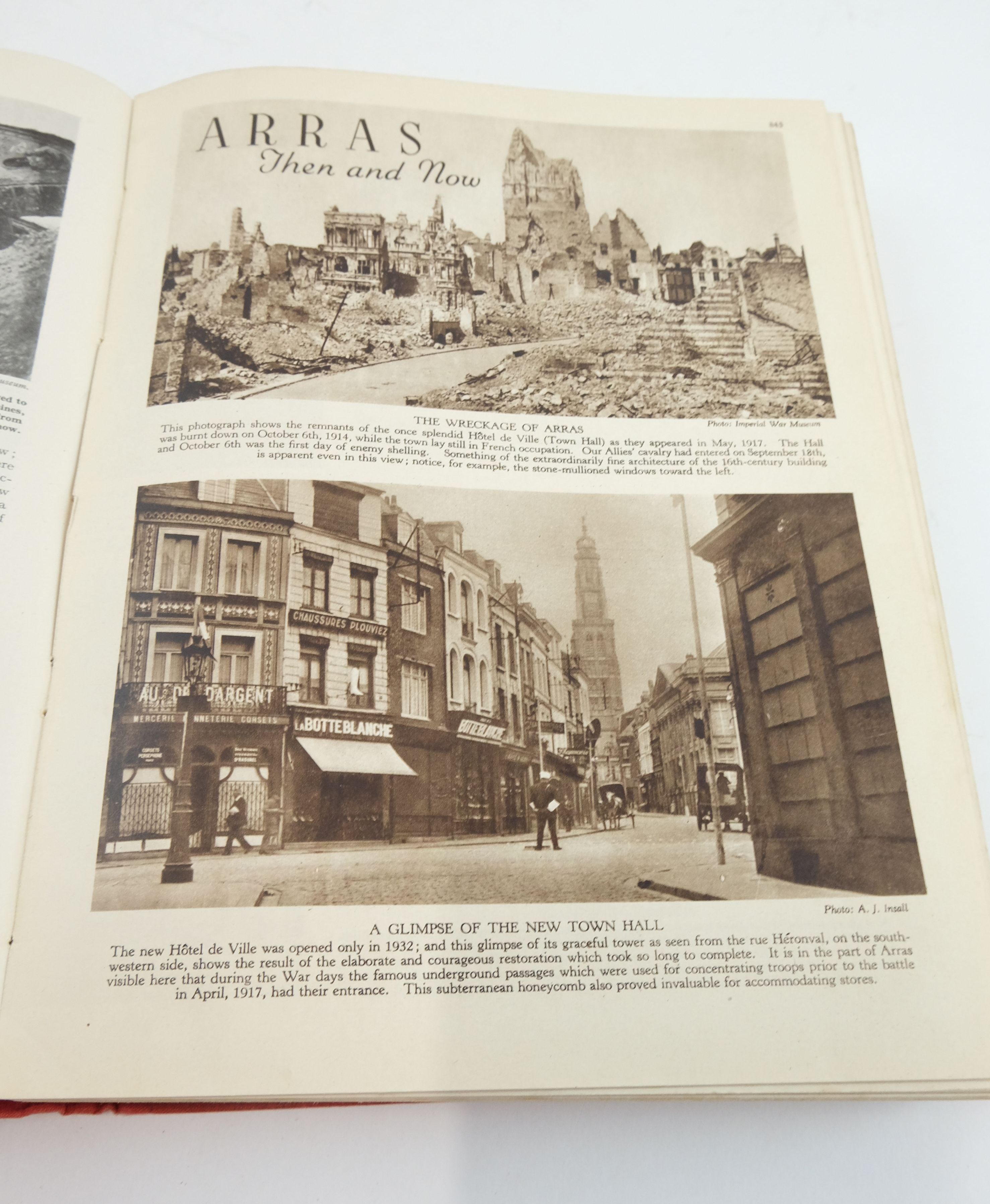 Almost very good condition. Three volume set (volumes I, II and supplement). Large format. Red pictorial cloth, gilt titles. B/w photos. The Battlefields of 1914-18 Then and Now. A heavy set.