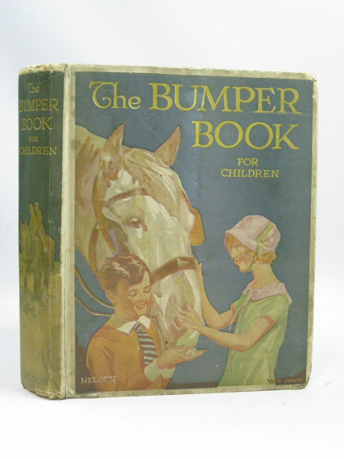 Pictorial boards show children stroking horse to front cover, both riding horse to spine, yellow titles. 8 colour plates plus b/w illustrations. First story is Joan Visits a Farm. 128 pages. 8.5 x 7". A chunky volume of stories and rhymes. Covers darkened and grubby. Bumping and wear to spine and corners. Front edge of spine cracked. Large ink inscription to verso of frontis. A few hinges cracked so binding feels weak. Some light foxing and an odd mark to contents. One plate is MISSING and one partially detached.