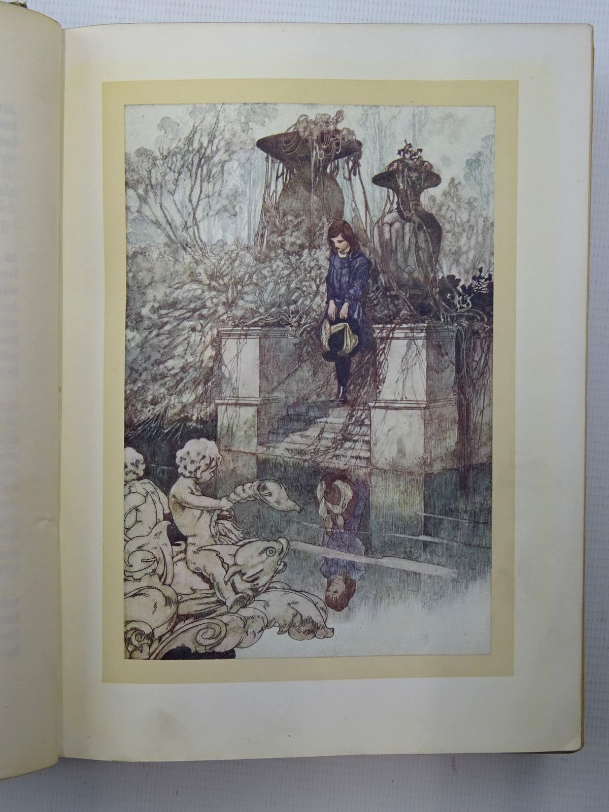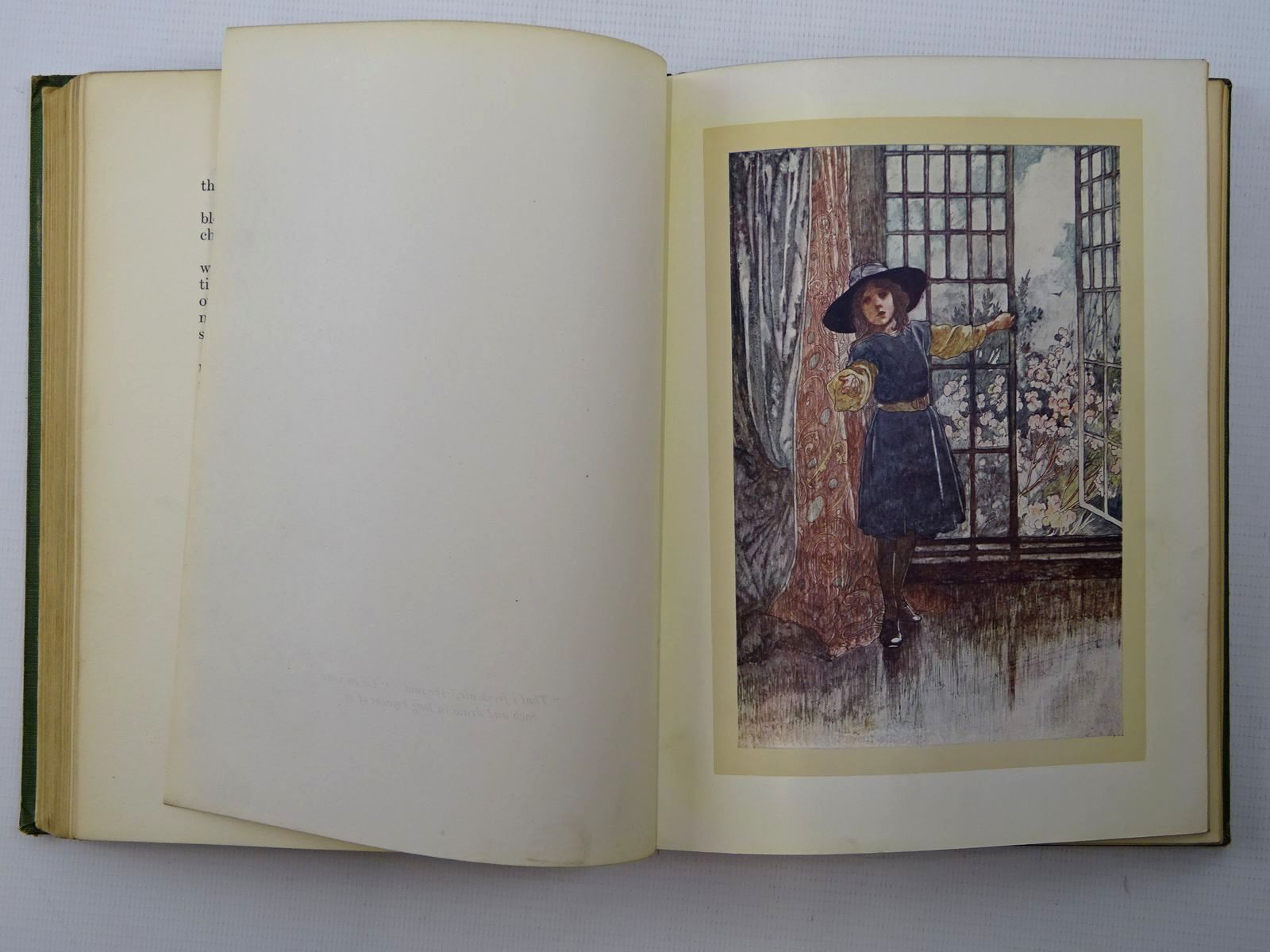 Almost very good condition. Green cloth, gilt titles and decorations to spine and front cover. Pictorial endpapers. 8 charming colour plates with captioned paper guards. Top edge green.
