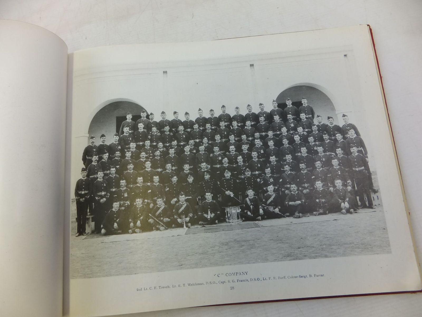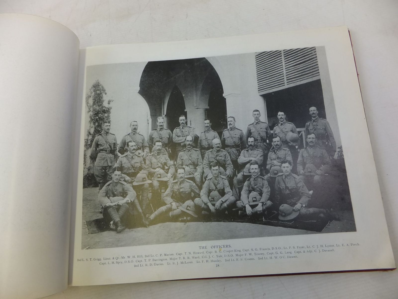 Poor condition. Oblong format. Gilt crest to front cover. Red cloth. Illustrated with brief historical account of the services of the Regiment. Mian-mir and Dalhousie, Punjab, India, 1906. B/w photos.