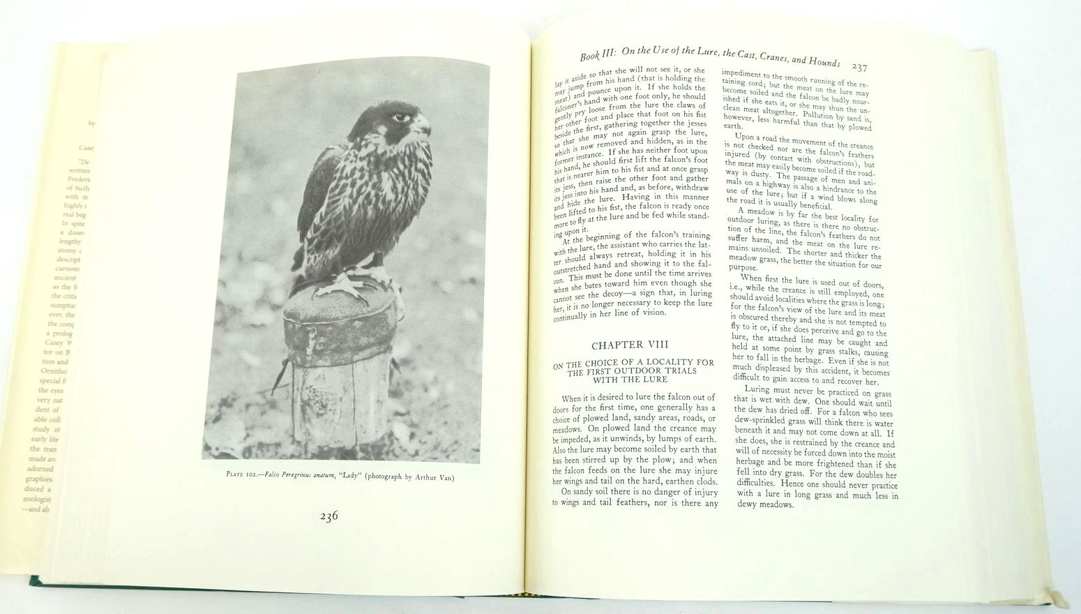 Very good condition in a good dustwrapper. The Art of Falconry Being the De Arte Venandi Cum Avibus of Frederick II of Hohenstaufen translated and edited by Wood and Fyfe. De Arte Venandi cum Avibus was originally written shortly before the year 1250. This is a reissue of the 1943 edition. Large format. Green cloth boards, gilt title and tooling to spine. Colour frontis. B/w illustrations. cx + 637 pages.