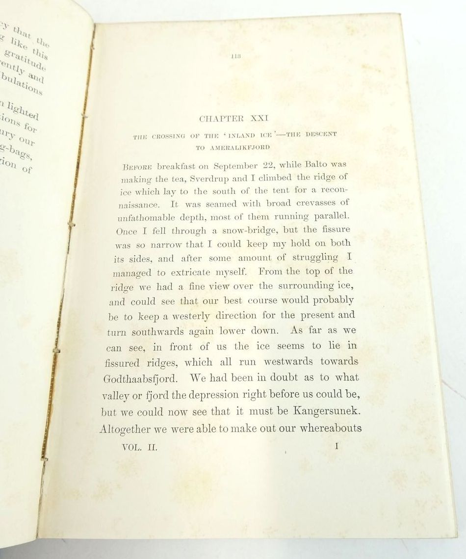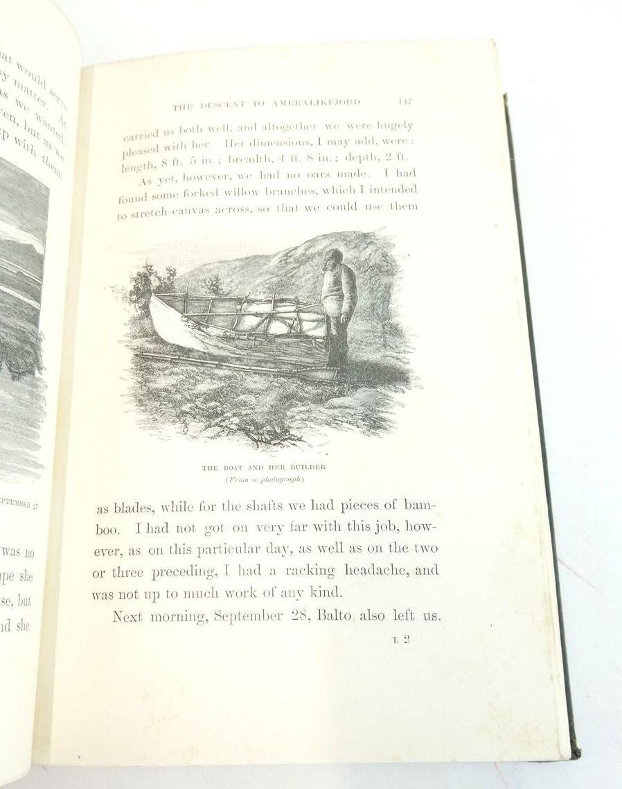 Good condition. The author's journey across the Inland Ice of Greenland. Blue cloth boards, silver titles and vignettes to front. Folding maps and numerous b/w illustrations.