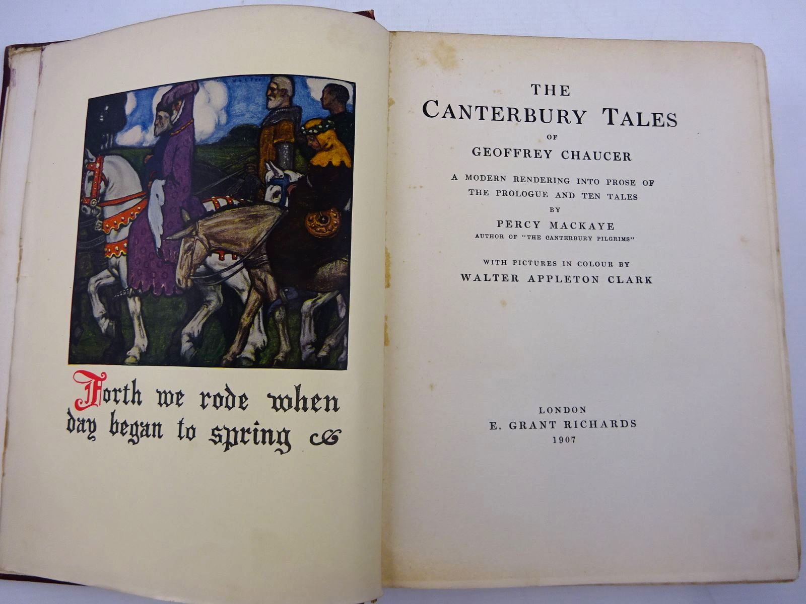 Almost very good condition. Large format. Dark red cloth with gilt titles. Small pictorial onlay to top of front cover. A Modern Rendering into Prose of The Prologue and Ten Tales. 6 colour plates.