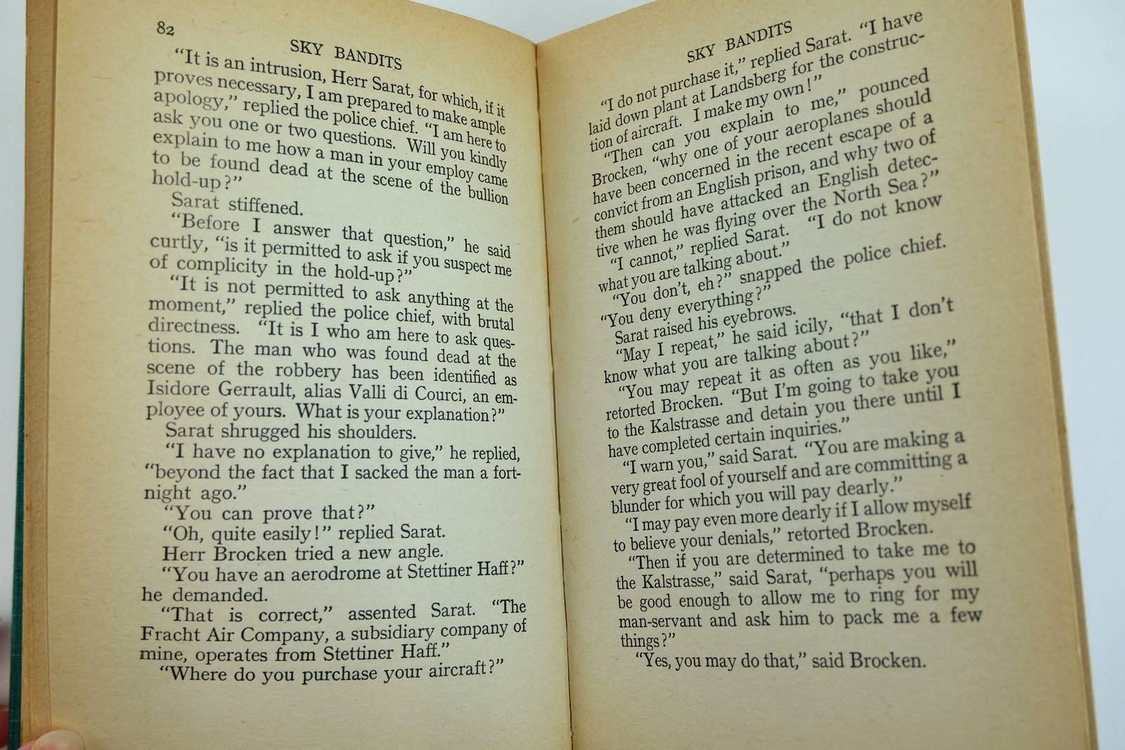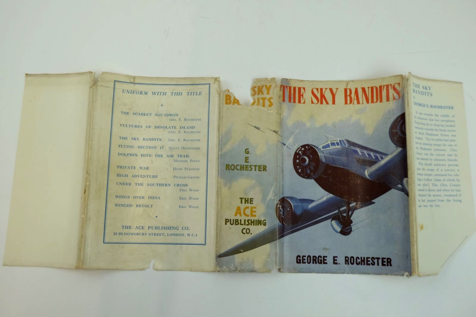 Very good condition in a good dustwrapper. Green cloth with black title to spine. 4 b/w plates, including frontis. It was towards the middle of the afternoon that two aeroplanes flying wing-tip to wing-tip, headed eastwards towards the bleak moors on which Bleakmoor Prison was situated. The two pilots had planned an amazing escape of one of the prisoners...