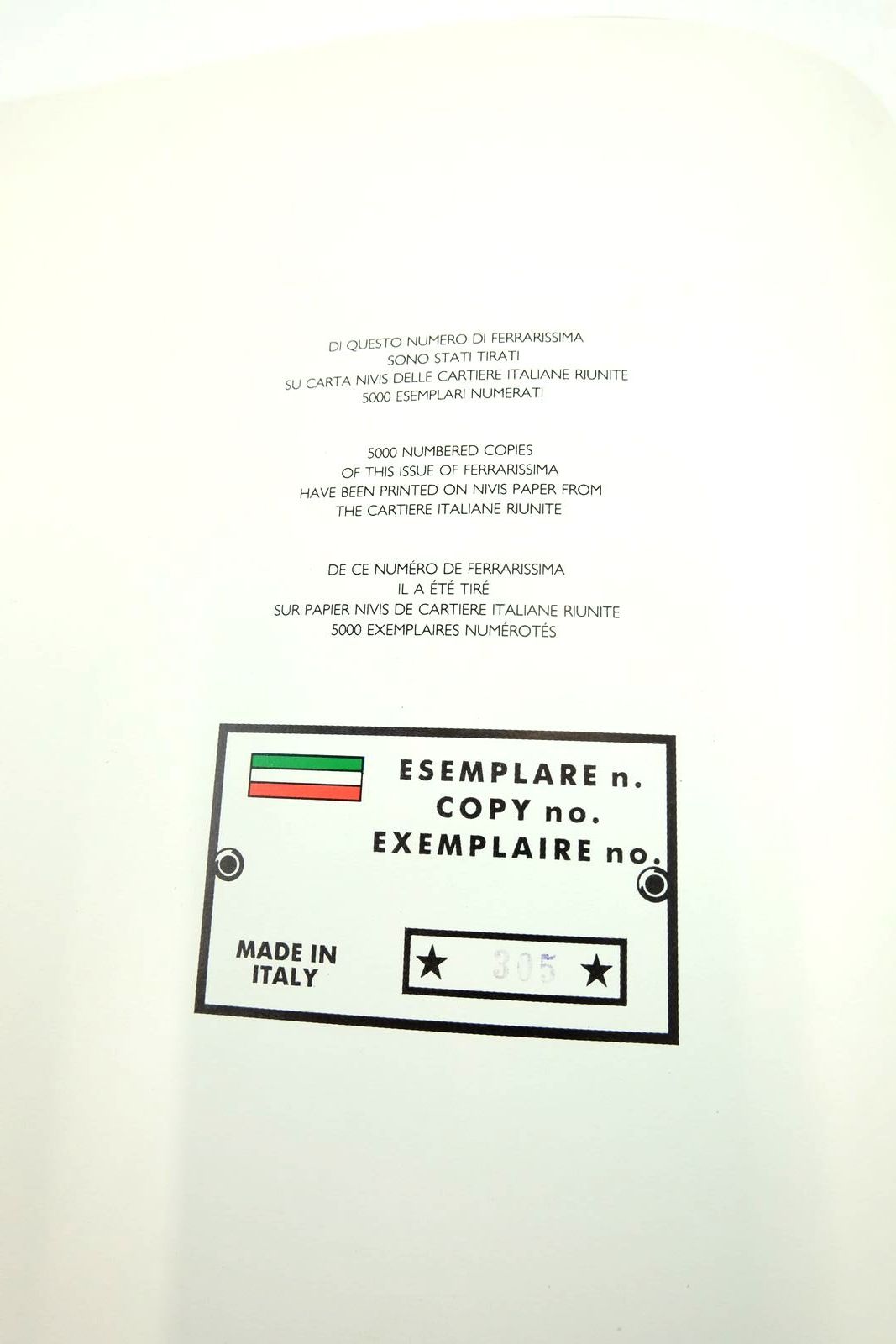 Slightly better than very good condition in a slightly better than very good dustwrapper. Large format. Colour photos. B/w diagrams. Text in English, French and Italian. Showcasing Ferrari road and racing cars. Limited edition of 5000 numbered copies.