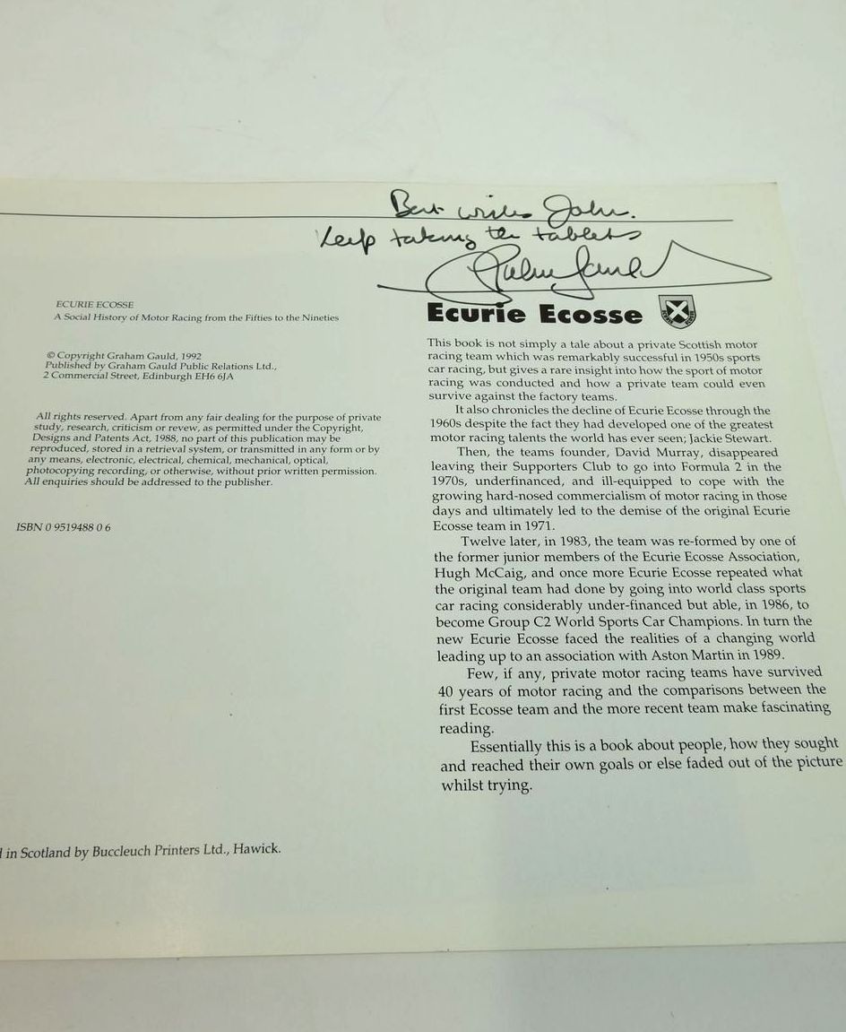Slightly better than very good condition. A social history of motor racing from the 50's to the 90's. Large oblong format. Pictorial card wraps. B/w photos. vi and 210 pages.