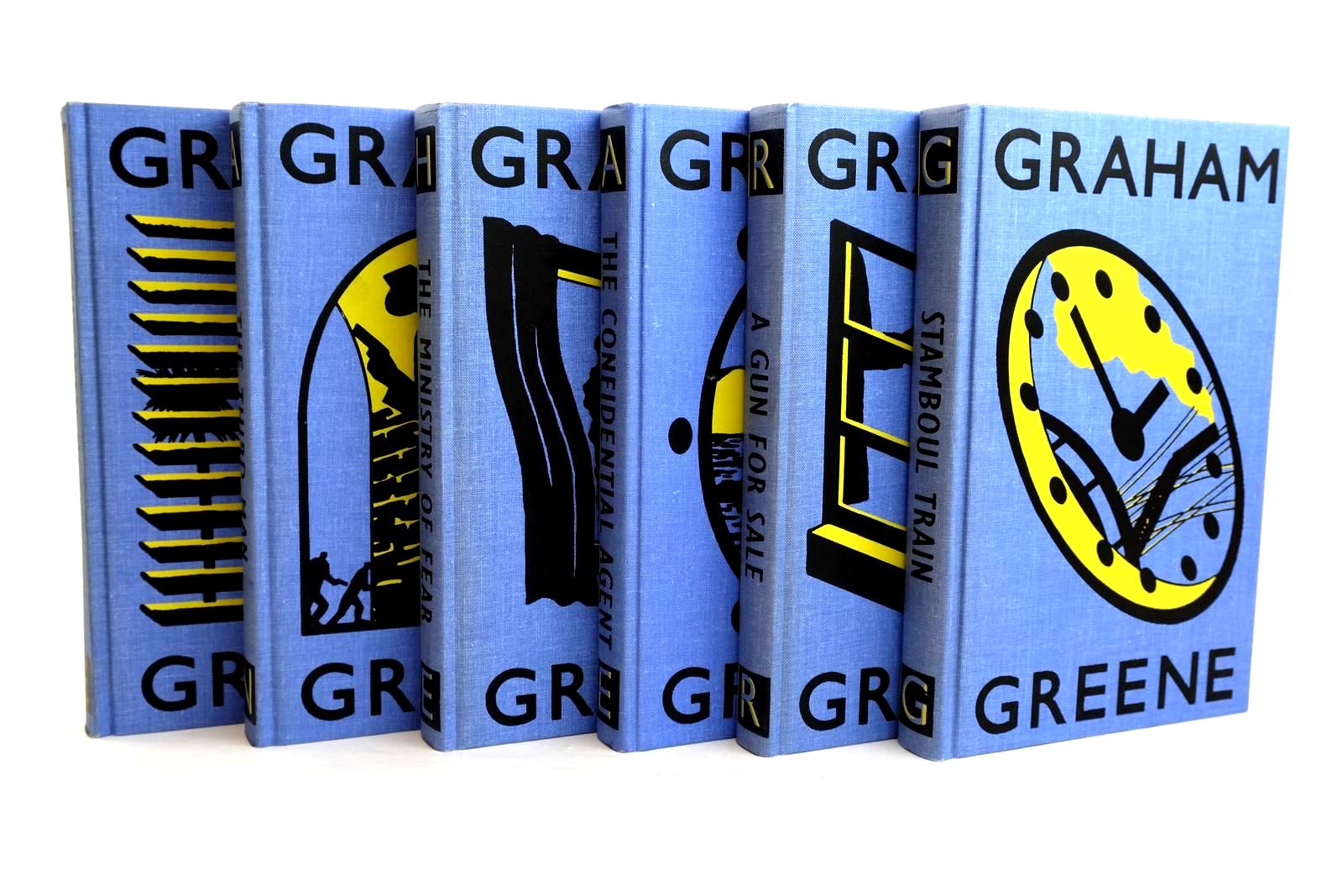 Slightly better than very good condition. Six volumes. Blue cloth with vivid black and yellow illustrations to front cover. Black title to spines. B/w illustrations. Our Man In Havana; The Third Man; The Ministry Of Fear; The Confidential Agent; A Gun For Sale; Stamboul Train.