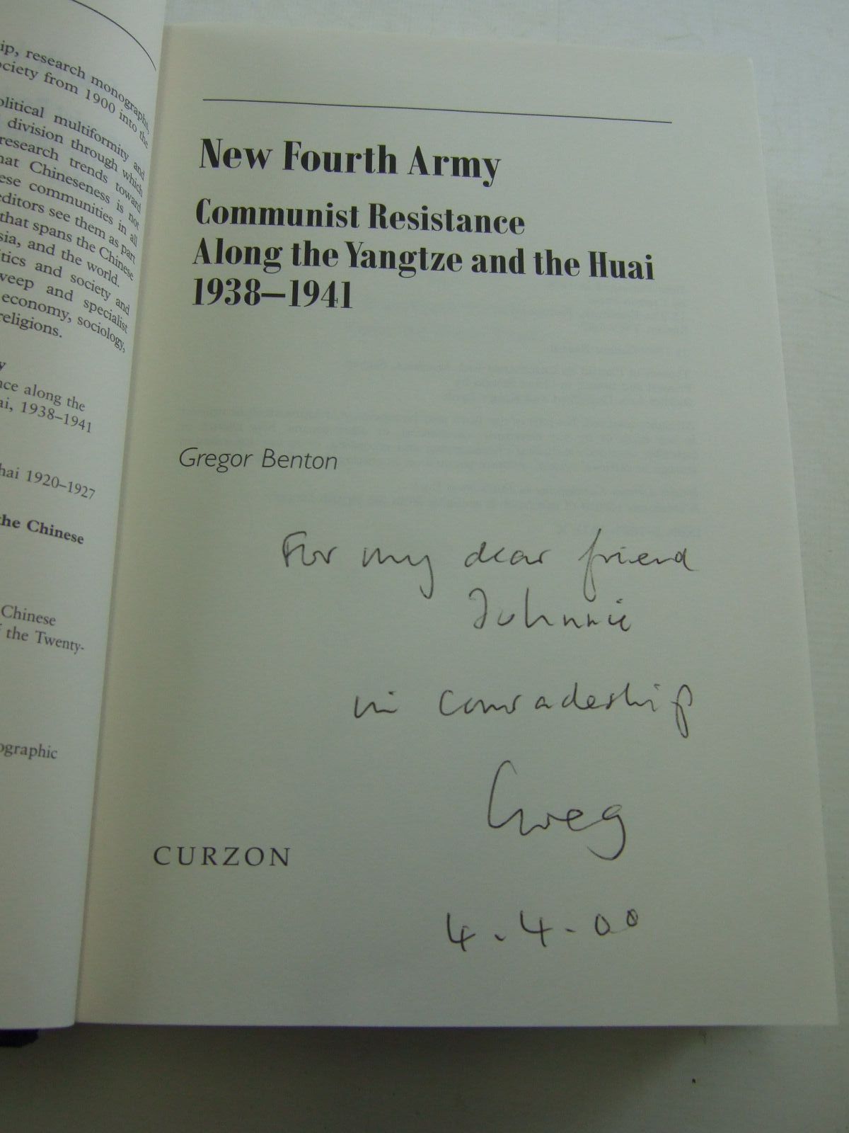Very good condition in a very good dustwrapper. Communist Resistance Along the Yangtze and The Huai, 1938-1941. B/w photos.