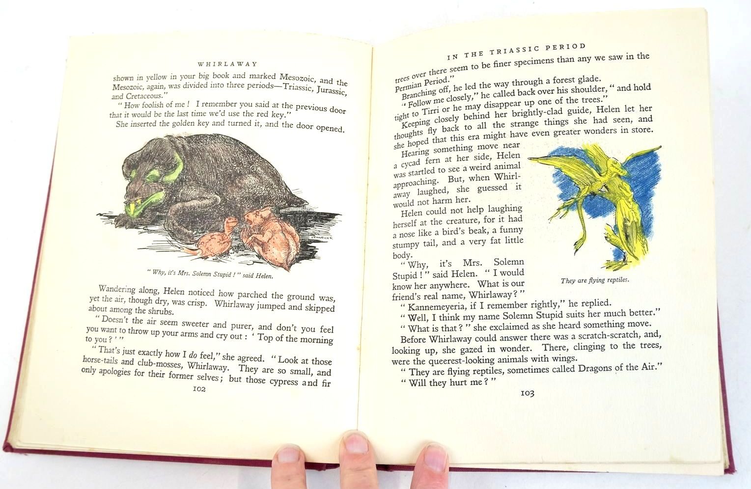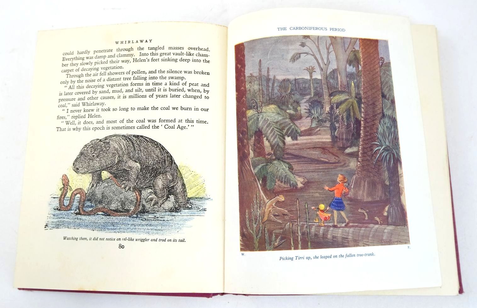 Good condition. A delightful story of the Earth's past through successive geological eras, in the company of Helen and her little elf-like friend Whirlaway. Dark pink cloth, black titles and vignette to front cover. Blue and white pictorial endpapers. 9 colour plates and numerous b/w drawings. 237 pages.