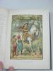 Spine and corners bumped and worn. Spine rubbed and browned. Covers slightly grubby and rubbed. Front endpaper is MISSING. Ink inscription to top edge of front pastedown. Title page has been neatly coloured in, about 4 illustrations have also been coloured. One hinge cracked. Staples rusty. First gathering, contents page to page 12, detached from bottom staple. Some light browning/foxing. All plates present.