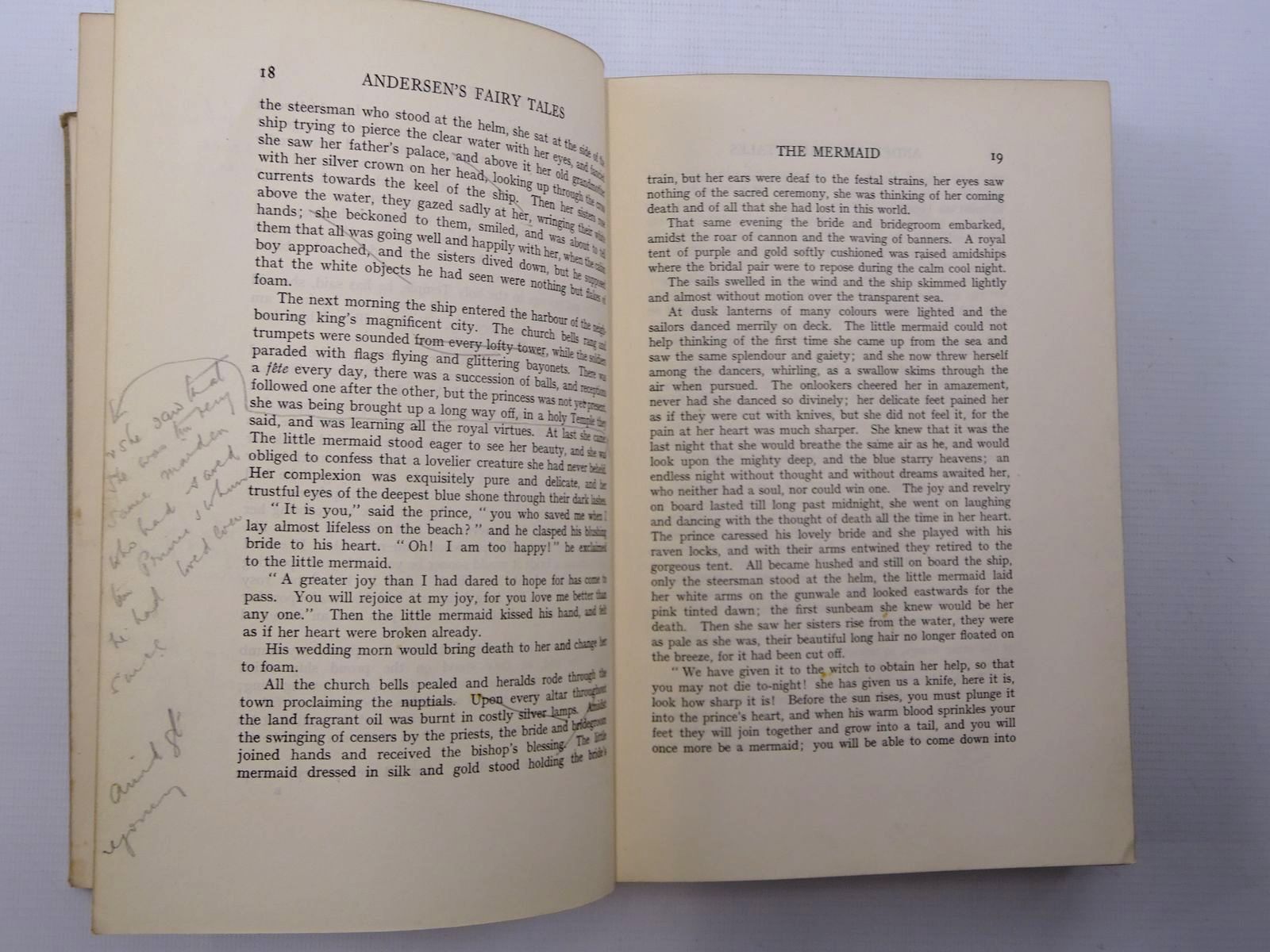 Covers have browned, so pale blue cloth only shows through in a few places. Corners and spine are bumped; chipping and some fraying to cloth at top and tail of spine. Small split, with fraying to side of spine. Foxing to endpapers and outer page edges. Some grubby page margin marks. Pencil annotations to a few pages (appears to be to the first story 'The Mermaid').