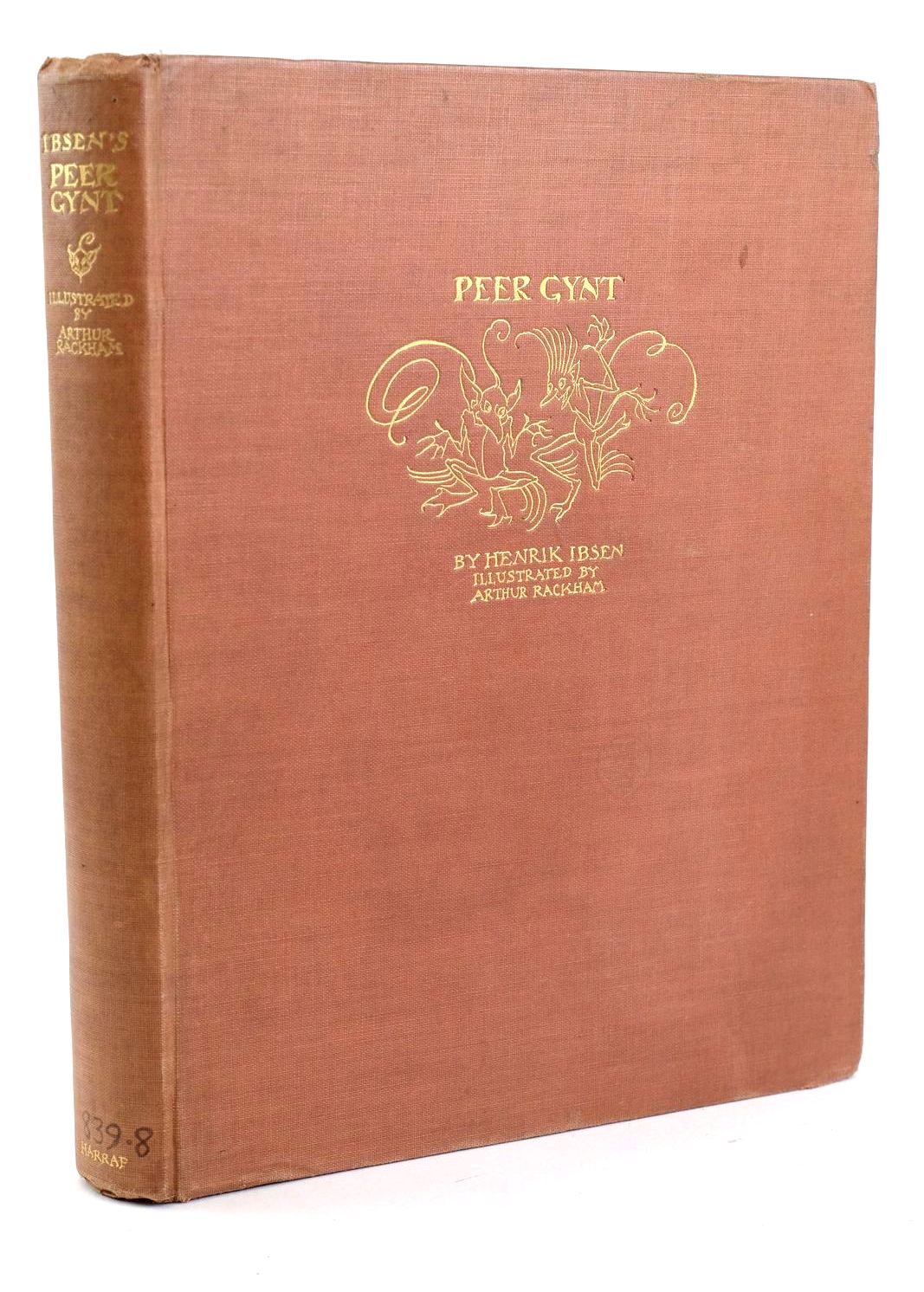 Slightly better than good condition. Peer Gynt is first and foremost a poetic fantasy, although based on a real person who lived Norway c1800. About his exploits, not much more is known than is found in Asbjornsen's book Norwegian Fairy Tales, in which Peer Gynt's chief exploits lie in the direction of fighting and conqueroring trolls. Admirably depicted by the "Goblin Master" in 12 colour plates plus b/w text illustrations. Brown cloth, gilt titles and vignette to front cover. Cream and brown pictorial endpapers. 255 pages.